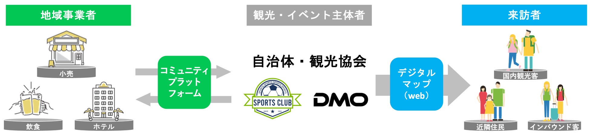 本ソリューションは、藤枝市の「蹴球都市藤枝 Next100 スポーツツーリズムプロジェクト」や、Jリーグクラブ「モンテディオ山形」の「モンタビ」プロジェクトにおいて、観光・イベント主体者と地域事業者が連携し、スタジアムに訪れる観戦者への、試合前後の移動や地域周遊、飲食や購買、宿泊等の促進によってエリア内の地域周遊・地域消費の活性化を図る取り組みを実施する中で得た課題や知見・ノウハウを活用して構築した仕組みをベースに開発いたしました。