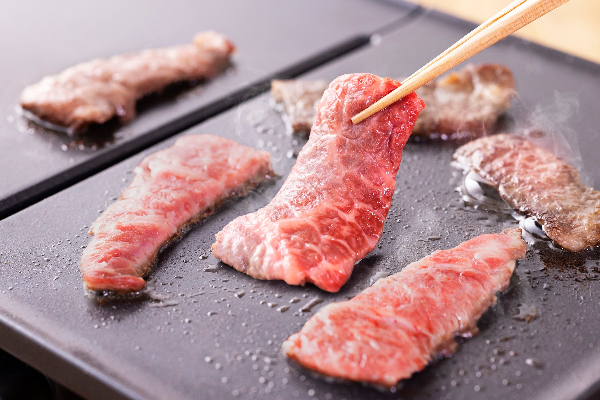 また、食材を置いたときに温度がすぐに戻りやすく、火加減を落とすことなく焼き上げることが可能で、焼肉をしたときに肉のドリップが出にくい他、焼きあがるのを待つ、「焼き待ち」がありません。