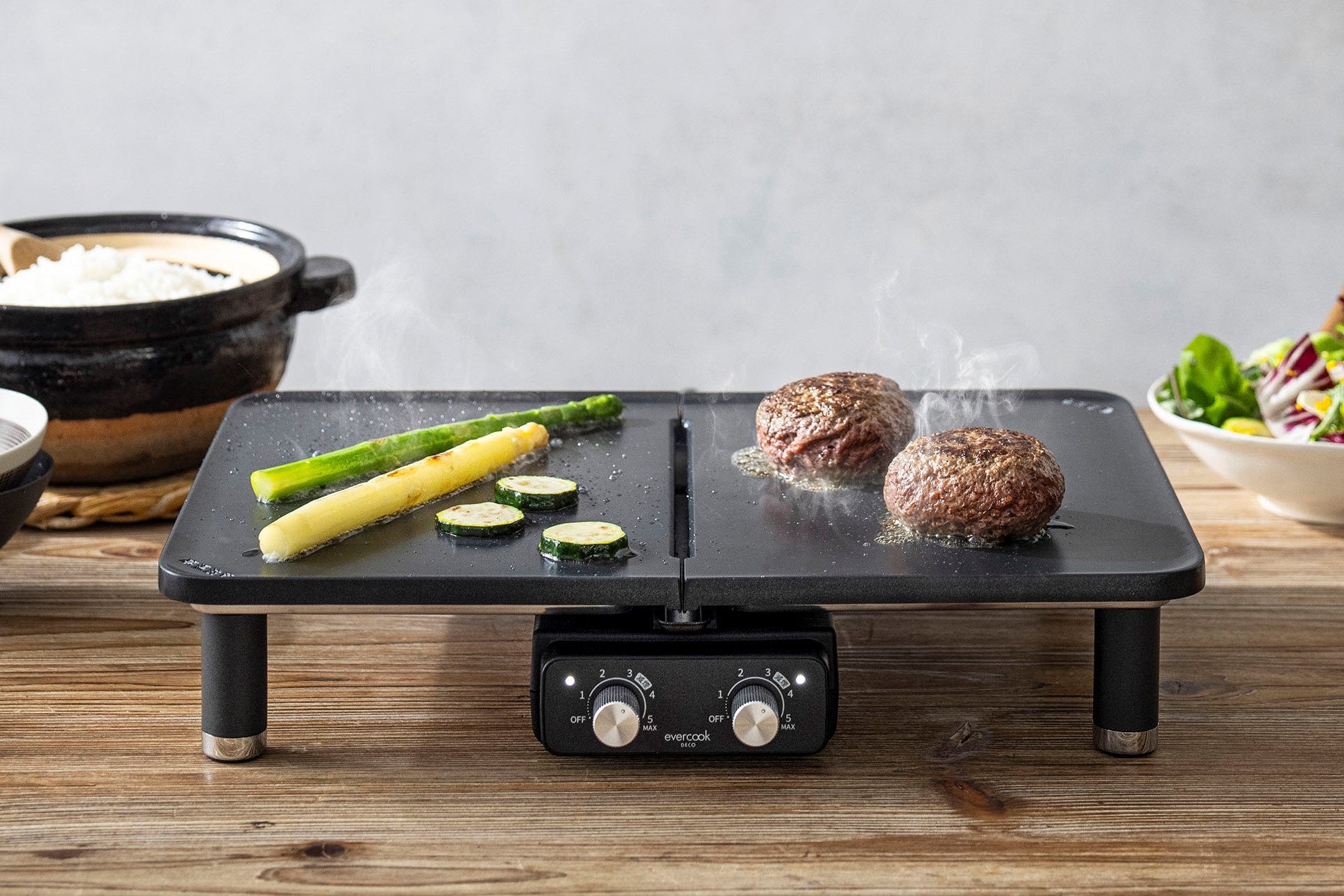 今回、evercookとして初めて調理家電を展開します。自宅に欠かせない調理家電「ホットプレート」は焼きムラが起こり、美味しく焼けなかったり、使った後にしまうのが大変だったりします。「ずっと使いたくなる」ものではないのではと考え、そこで、美味しく焼けて「ずっと使いたくなる」家電を目指し製品を開発しました。