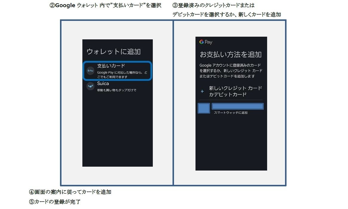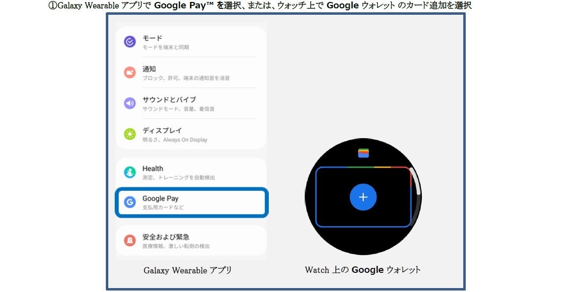※Watchのソフトウェア、Galaxy Wearable アプリ、Google ウォレットを最新の状態にアップデートして頂く必要があります。