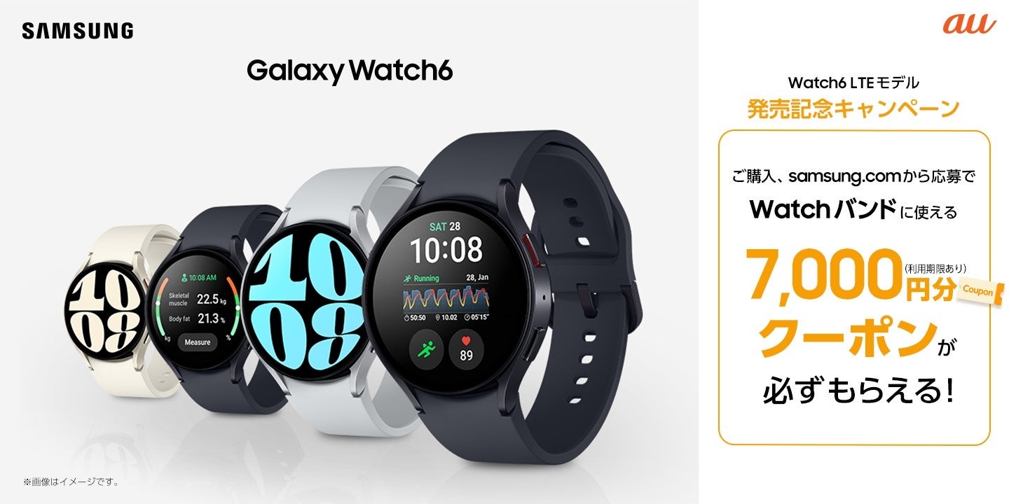 対象期間中に対象販路にて、「Galaxy Watch6」をご購入・ご応募いただいたお客様全員に、Samsungオンラインショップ( https://www.samsung.com/jp/offer/ )でご使用いただける「Galaxy Watch Bandクーポン(7,000円分)」をプレゼントいたします。