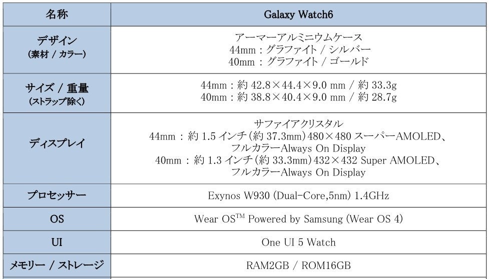 「Galaxy Watch6」の特長は、以下のとおりです。