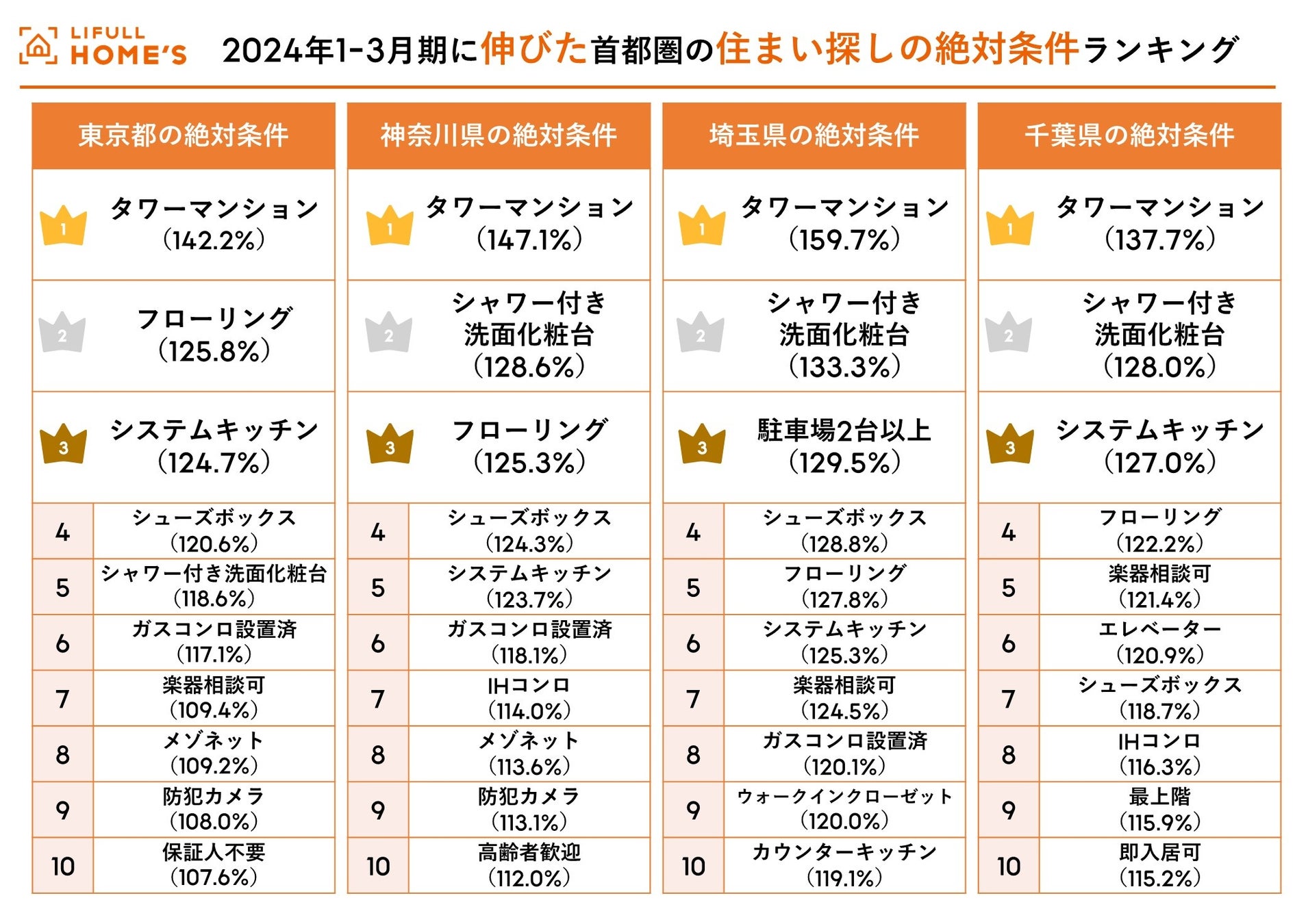 2024年1-3月期 住まい探しの絶対条件ランキング【東京都編】