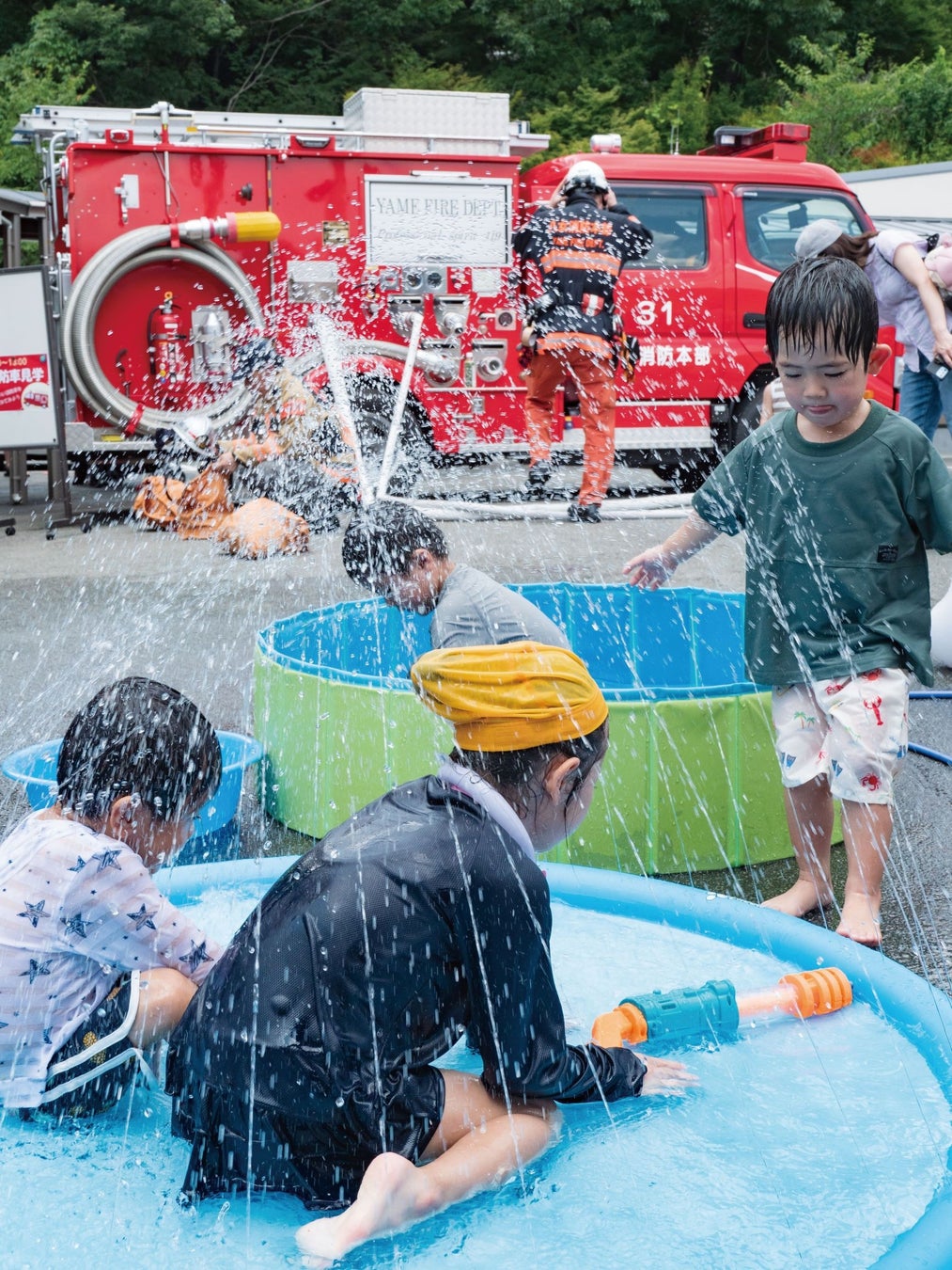 ペットボトル水鉄砲の作成や消防車見学、恐竜ミストなど、楽しい内容盛りだくさん。