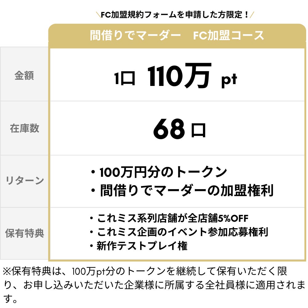【間借りでマーダーFC加盟コース 】110万円×68口