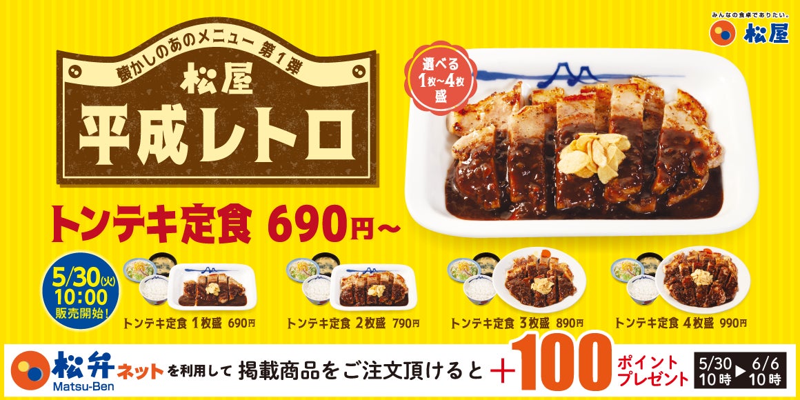 【松屋】3週連続で平成レトロメニューが復活「トンテキ定食&トマトカレー」 発売 「トンテキ定食」5月30日(火)午前10時~「トマトカレー」6月6日(火)午前10時~販売開始