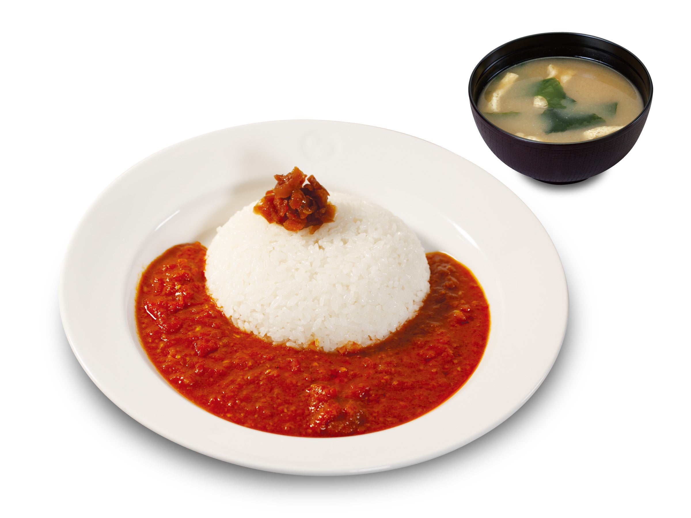2002年に「初代うまトマハンバーグ定食」として初登場した、松屋のトマトシリーズ。2004年に販売開始した「うまトマロールキャベツ定食」を経て、2009年、「トマトカレー」が誕生しました。フレッシュでジューシーなトマトとこだわりのカレーソースがマッチし、トマトの酸味とにんにくの旨味、スパイス感を楽しめる逸品に仕上がっています。「トマトは苦手だけど美味しく食べられる!」といったお声もいただく本メニュー。みなさまへの感謝を込めて、プレーンの「トマトカレー」をサンキュー価格、390円でご提供いたします。