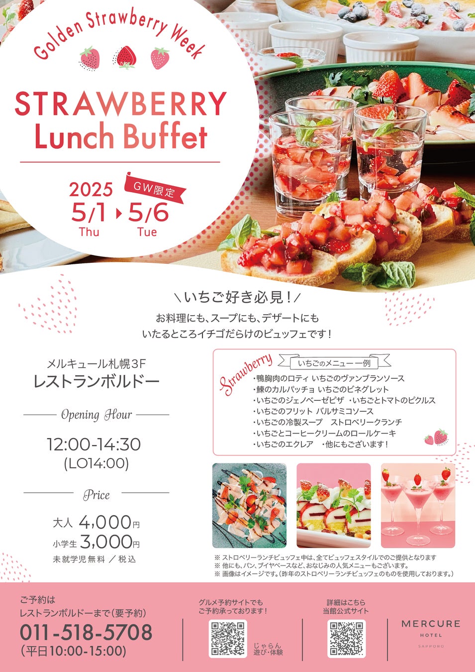 【メルキュール札幌】イチゴ好き必⾒!恒例のゴールデンウィーク限定『ストロベリーランチビュッフェ』、今年も開催致します。