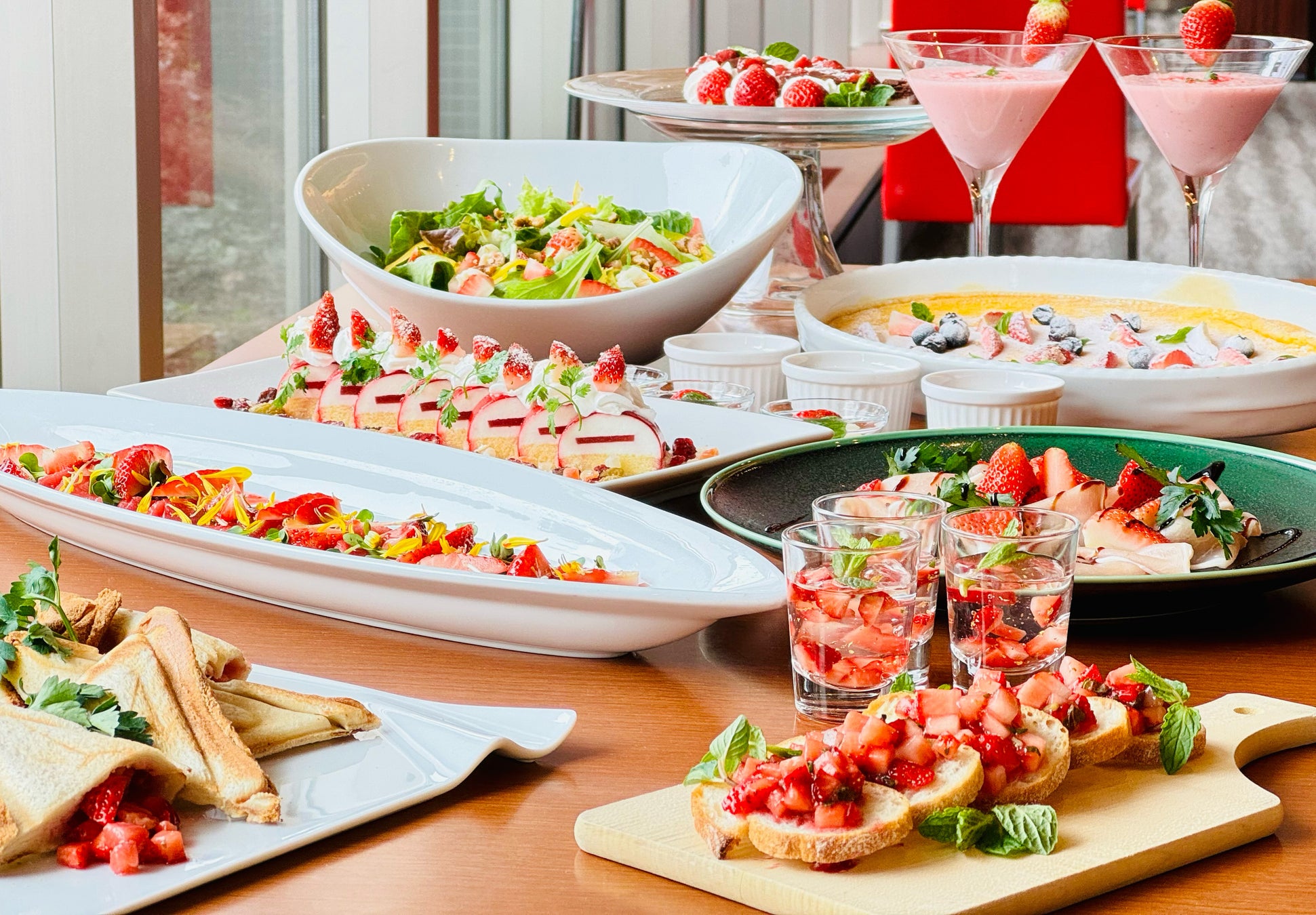 前菜からデザートまでふんだんにイチゴを使用、赤いイチゴでいっぱいのビュッフェボードは、見ているだけで食欲を刺激されます。