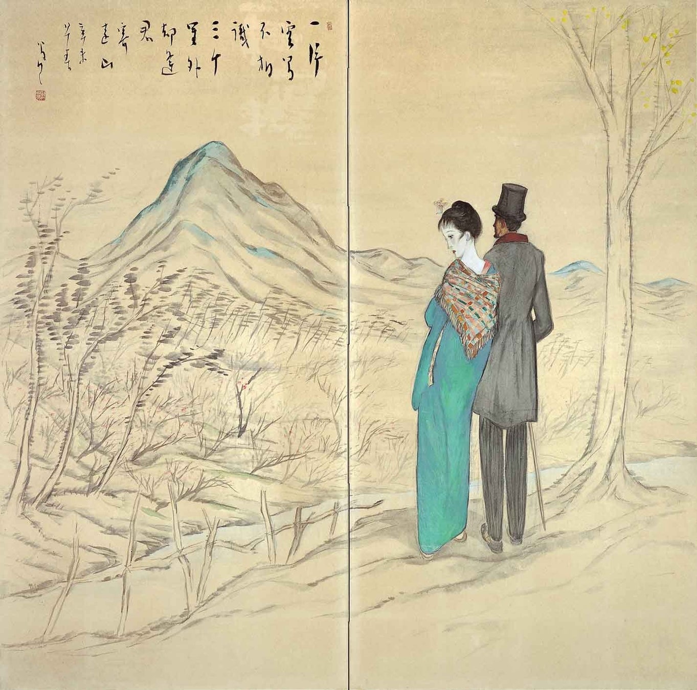 1931(昭和6)年 紙本着色(二曲一隻) 121.2×97.5cm 夢二郷土美術館蔵