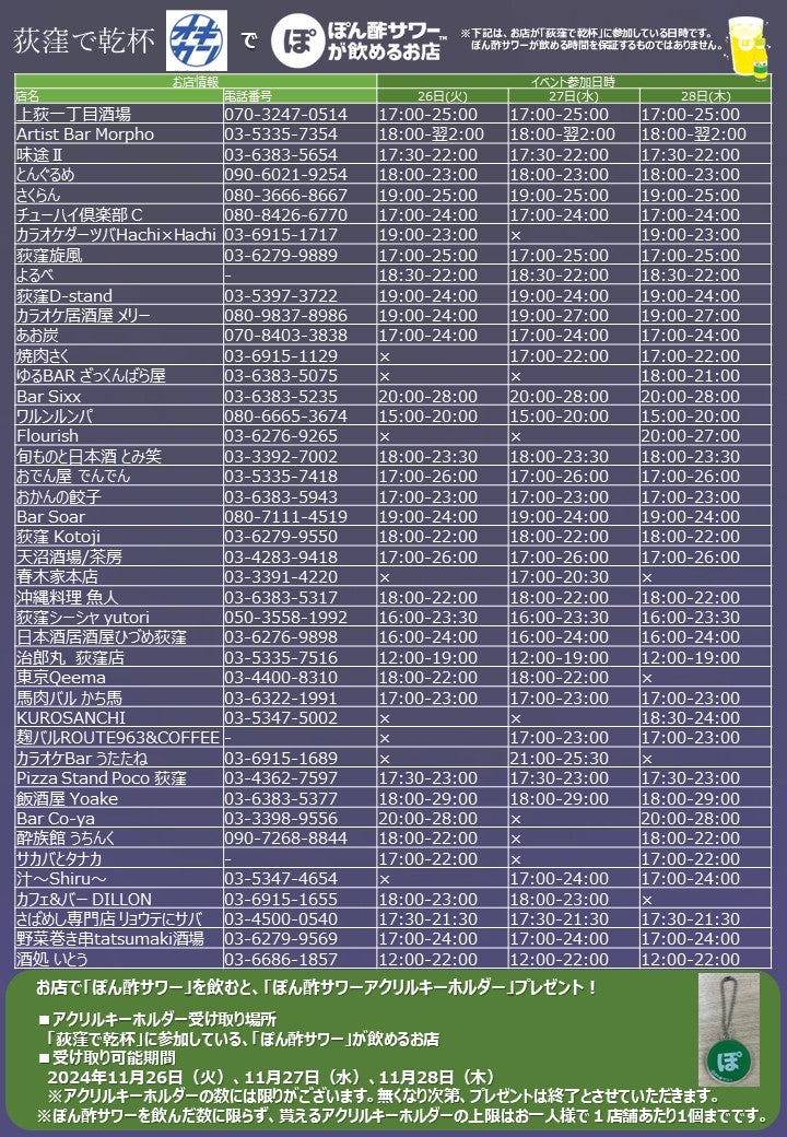 はしご酒を愉しむ街:荻窪を”ぽ”で埋め尽くせ!11/26-11/28荻窪でミツカン「ぽん酢サワー」を楽しもう