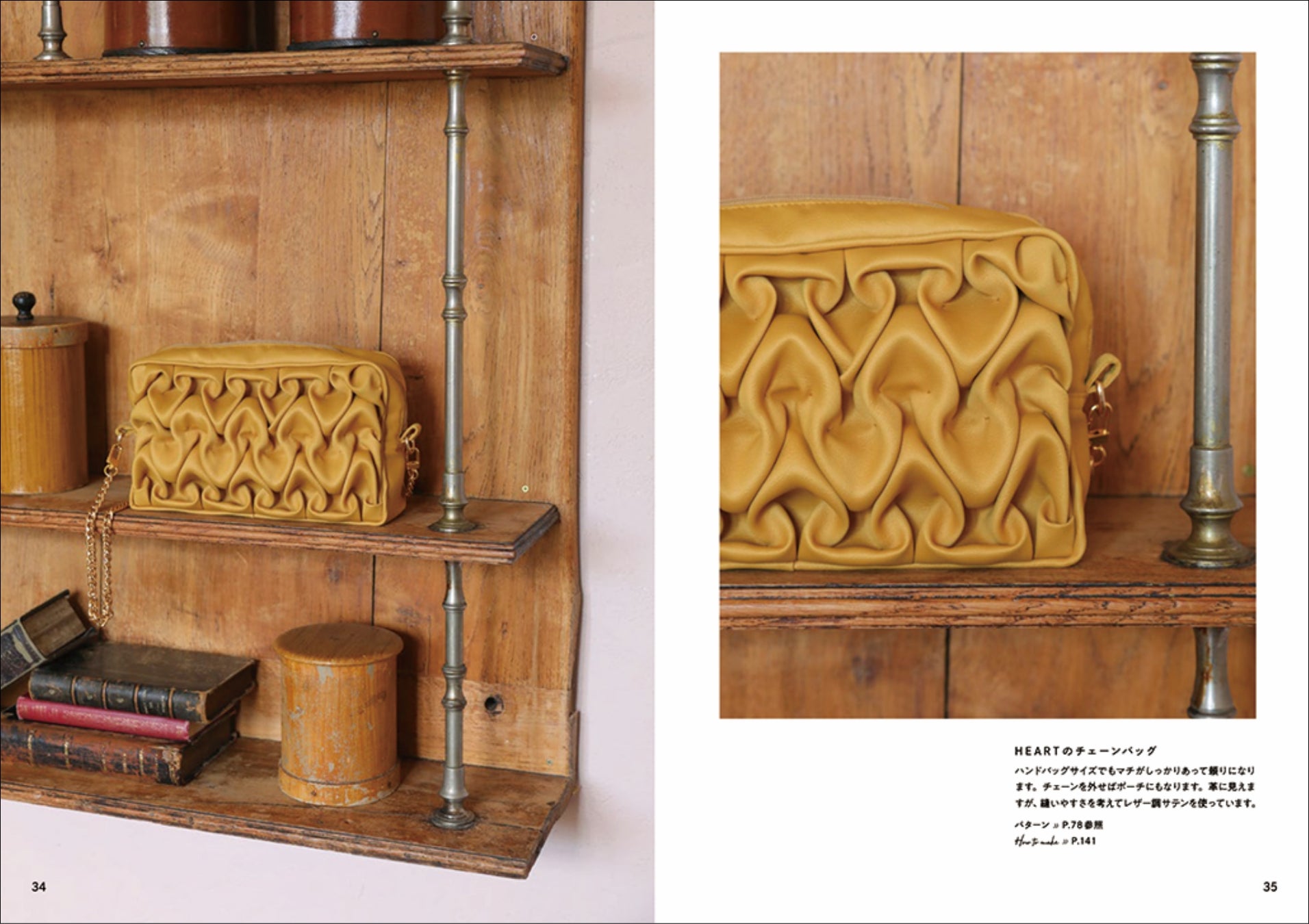 ラティススモッキングは布を裏から格子状に縫い縮めて表に柄を出す手法で、シンプルな1枚の布にまるで彫刻のような立体感が生まれます。本書は模様が美しく、ついつい夢中になってしまうパターンを20種類選び紹介。