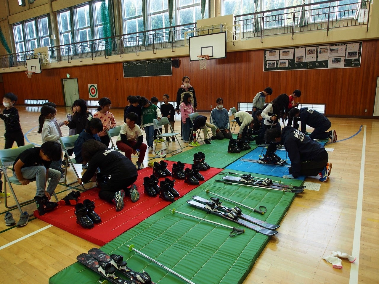 当日は、近隣スキー場のスタッフが体育館に実際のリフトを運び込み、手動で稼働させながら児童に乗降方法を説明します。
