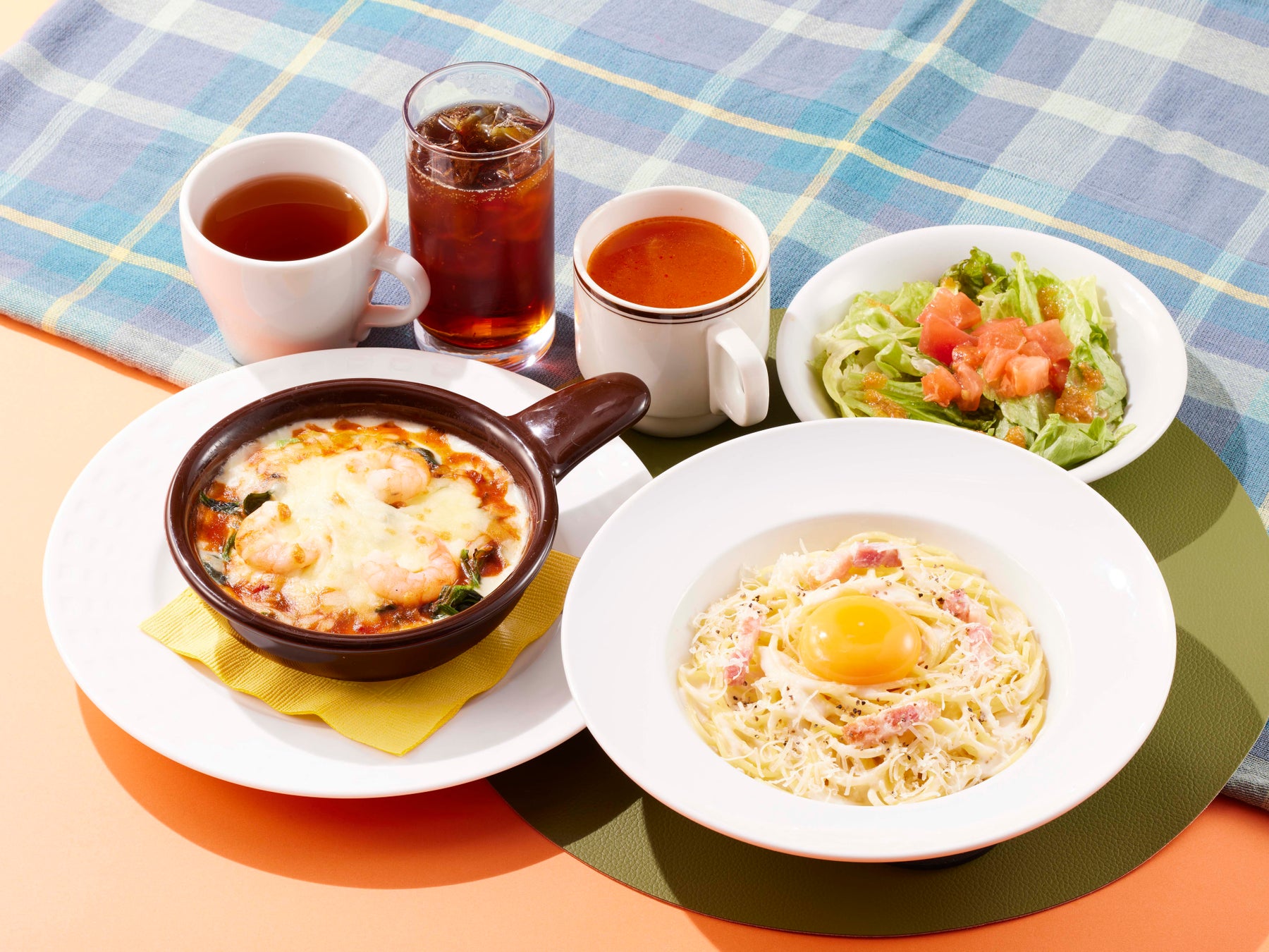 ココス人気のミニサイズパスタと「ミニ!海老とほうれん草のドリア」を一緒にお楽しみいただけるお得なセットです。