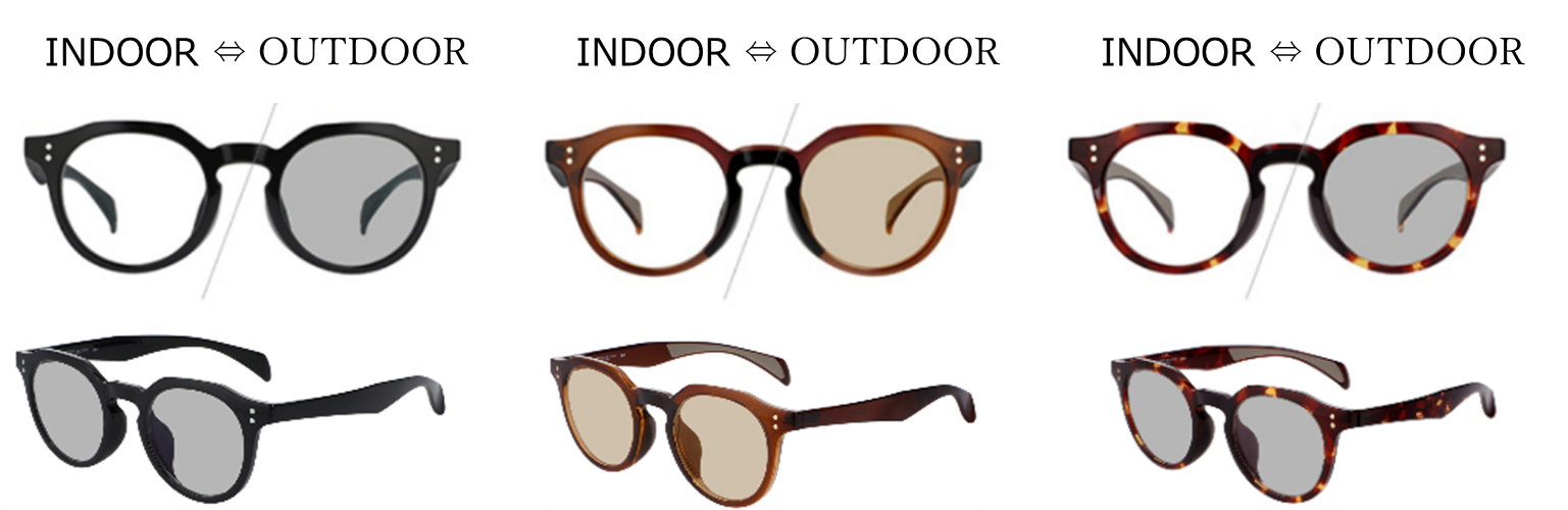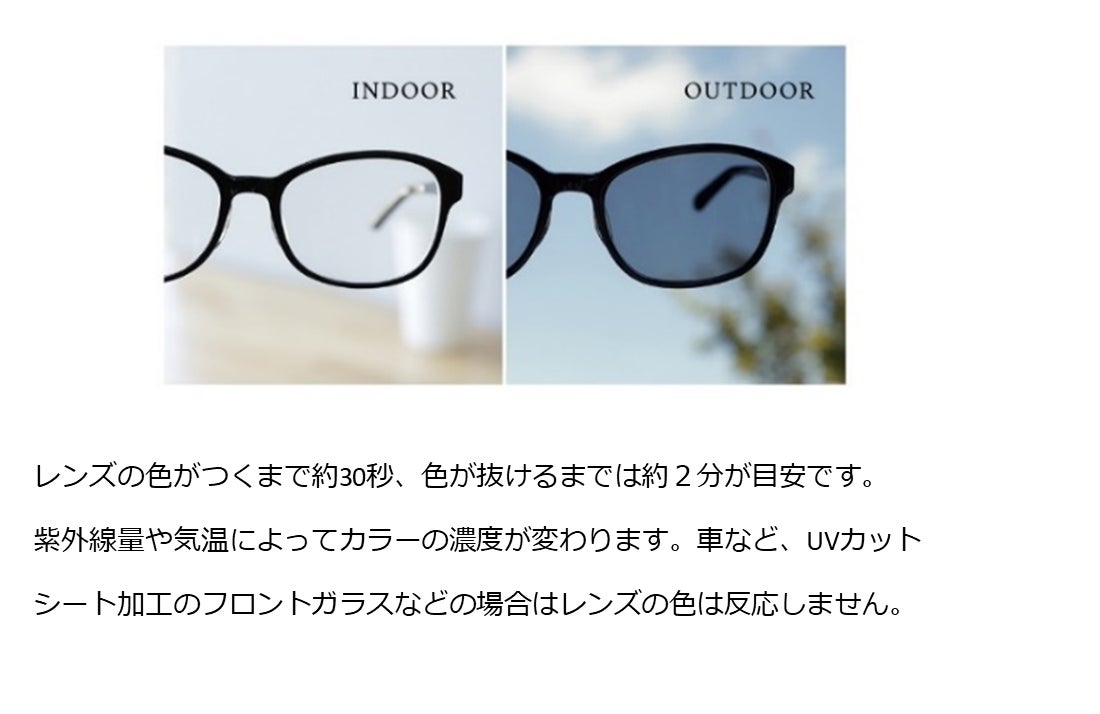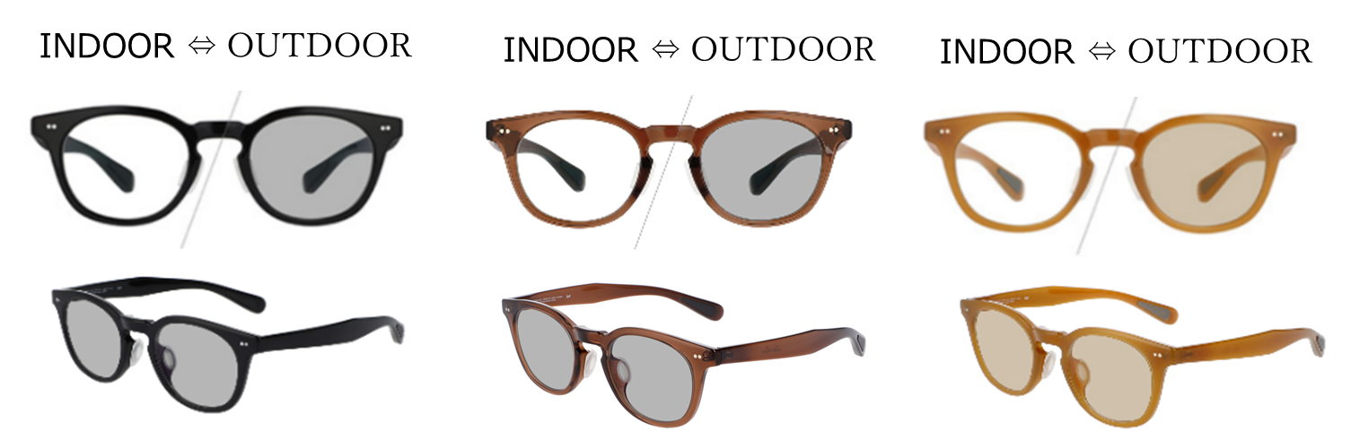 店頭でも、オンラインストアでも、オプションレンズにて下記調光レンズ(度付き・度なし)への変更も承っております。