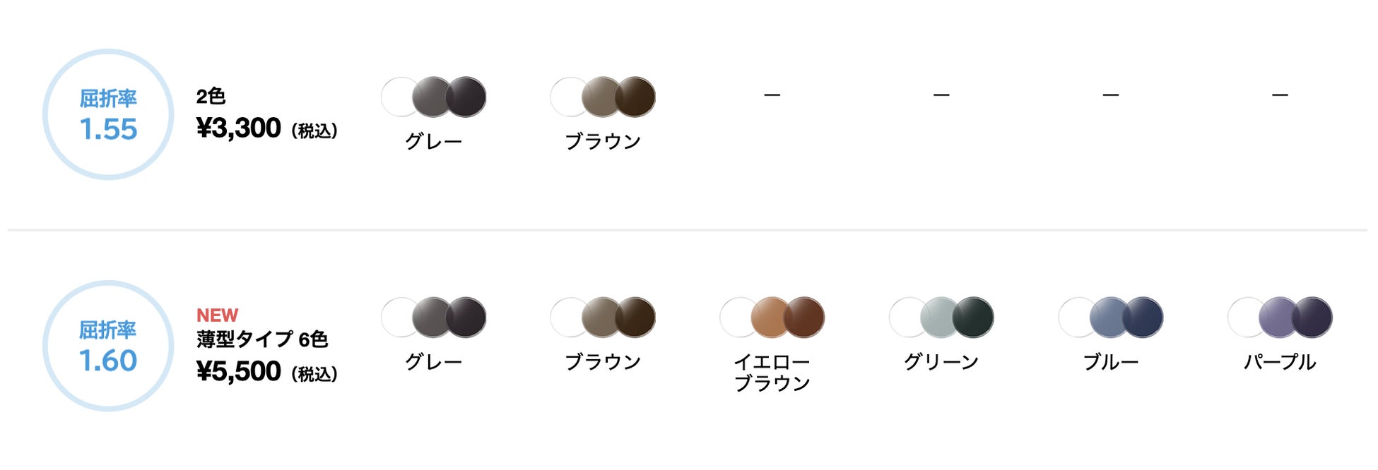 - 「色が変わるレンズ(調光レンズ)」カラーバリエーション/追加料金について
