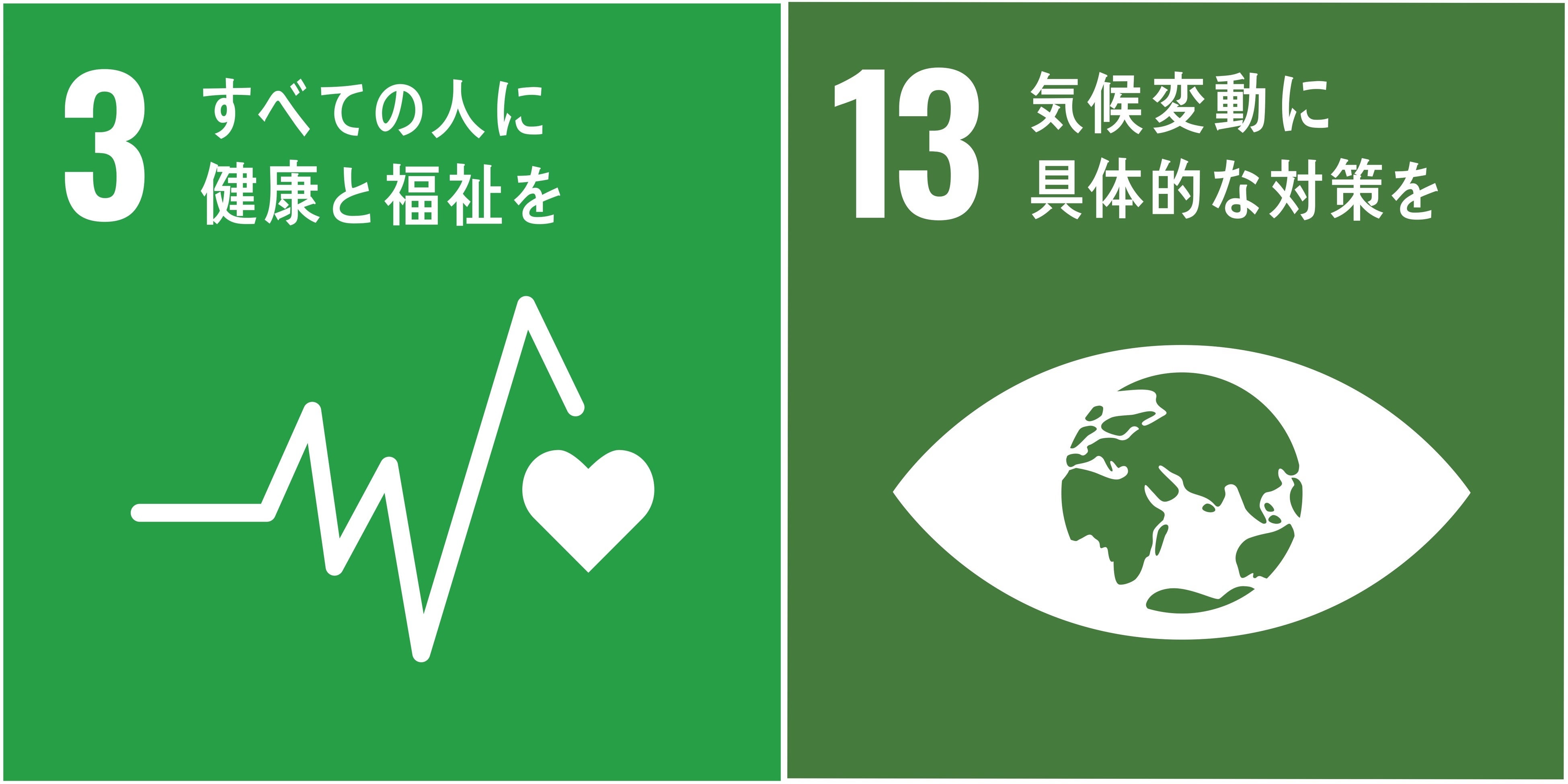 今回、スタイリングライフHDの取組みは、SDGsの持続可能な開発目標3「すべての人に健康と福祉を」及び開発目標13「気候変動に具体的な対策を」を支援しています。