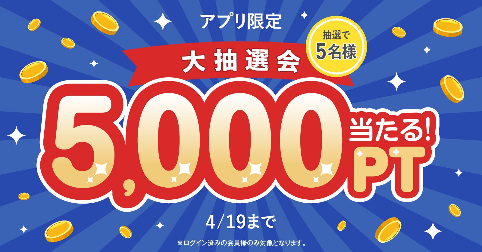 株式会社TORICO(本社:東京都千代田区、代表取締役社長:安藤拓郎)が運営するECアプリ『漫画全巻ドットコムアプリ』にて、5,000ptが当たる大抽選会を4月19日(水) 23:59まで開催いたします。