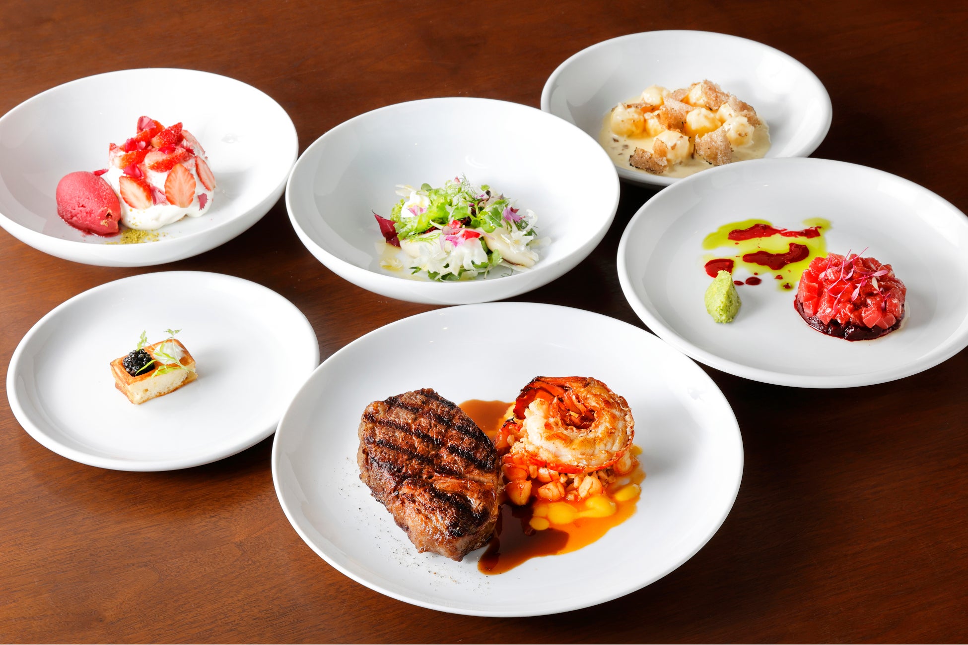 - 黒毛和牛テンダーロインステーキ ロブスターファロット カボチャスクワッシュと赤ワインソース