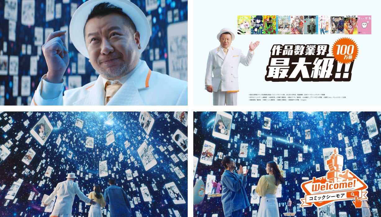 コミックシーモアは2022年10月に取り扱い冊数100万冊を突破しました。今回新たに公開する新CMは、竹内さん、中条さん、ケンドーコバヤシさんが、業界最大級の作品数のシンボルであるシーモアタワーで100万冊を超えるマンガとの出会いを印象的に表現しています。