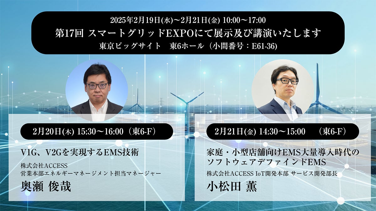 株式会社ACCESS(本社:東京都千代田区、代表取締役 社長執行役員:大石 清恭、以下、ACCESS)は、エネルギーマネジメント(エネマネ)プラットフォーム「POWERGs®(パワージーズ)」シリーズの新製品として、スマートホーム・小規模需要家向けEMS(エネルギーマネジメントシステム)に必要なソフトウェア群を一括提供する「POWERGs® SMART CONNECT(パワージーズ・スマートコネクト)」を開発し、本日より、エネマネ事業者や法人需要家、住宅関連事業者向けに提供開始いたします。また、2025年2月19日(水)~2月21日(金)に東京ビッグサイトにて開催される「第17回 スマートグリッドEXPO 春」(ブース:東6ホール E61-36)に出展し、本製品を紹介いたします。