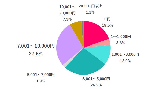 リスキリングにかけてもいい月あたりの費用について尋ねたところ、「7,001~10,000円」が最も多く27.6%でした。次いで「3,001~5,000円」26.9%、「1,001~3,000円」12.0%で、平均は6,797円でした。