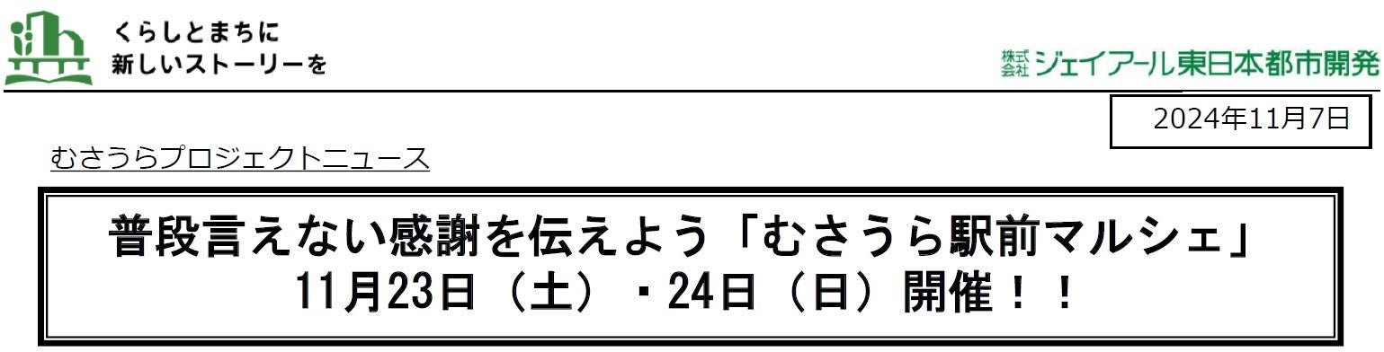 普段言えない感謝を伝えよう「むさうら駅前マルシェ」11月23日(土)・24日(日)開催!!