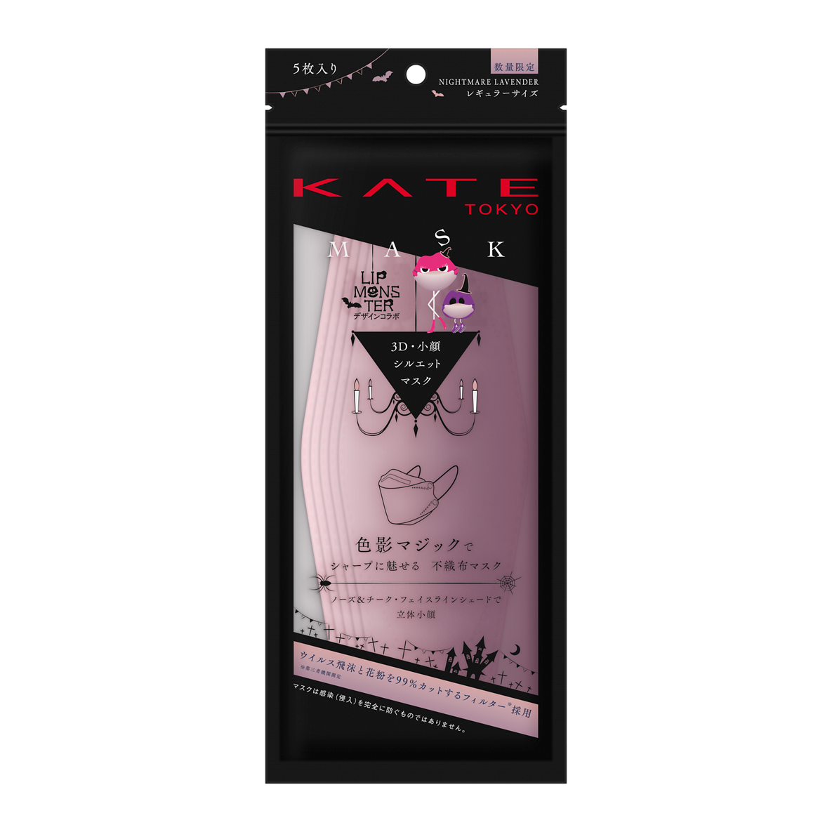 あの“リップモンスター”とデザインコラボ!KATEの3D・小顔シルエット不織布マスクに限定デザイン“MASK MONSTER”が登場 10月22日(土) 数量限定発売