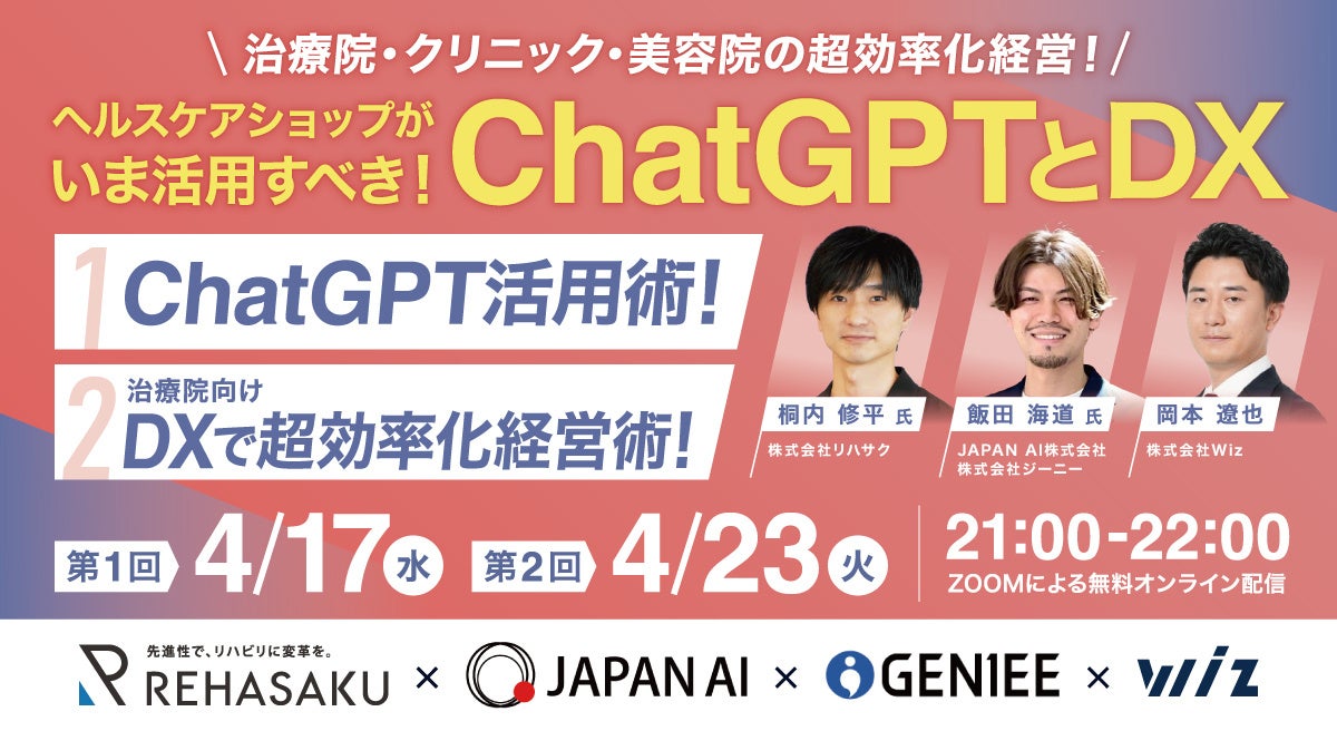 4/17(水) 【治療院・クリニック・美容院の超効率化経営!】ヘルスケアショップがいま活用すべき!《最新版》ChatGPTとDX
