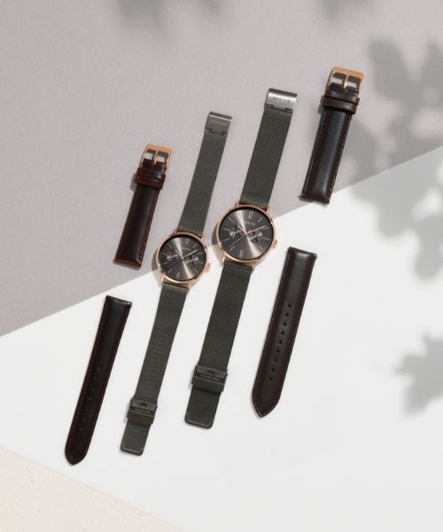 工具なしで付け替え可能なストラップが2本付属し、季節やシーンに合わせて付け替えを楽しめます。カラーバリエーションも豊富なので、ぜひお好みの1本をお選びください。
