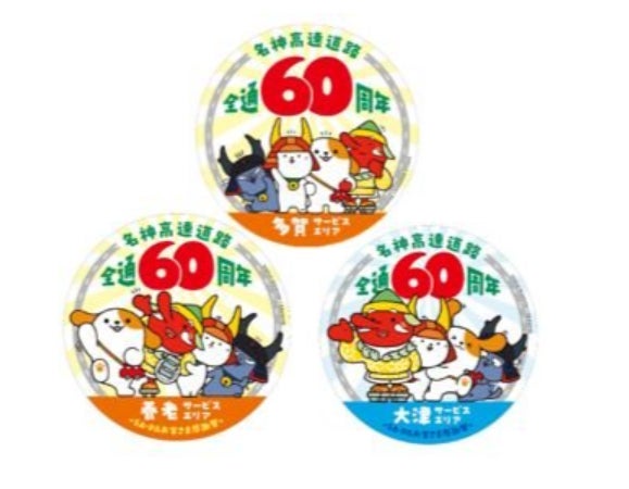 各SA・PAの名神60周年全通記念特別メニュー、記念福袋をご購入いただいた方に、「ひこにゃん」、「わるにゃんこ将軍」、「サルタヒコくん」、「みちまるくん」がコラボしたオリジナルステッカーをもれなく1枚プレゼントします。オリジナルステッカーは3柄(全5種類)となります。ぜひ全て手に入れてみて下さい!