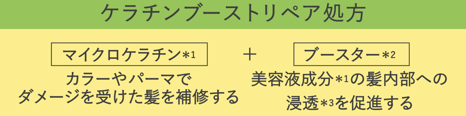 ダメージを補修して、髪の内部から艶やかでハリのある髪へ導く ケラチンブーストリペア処方