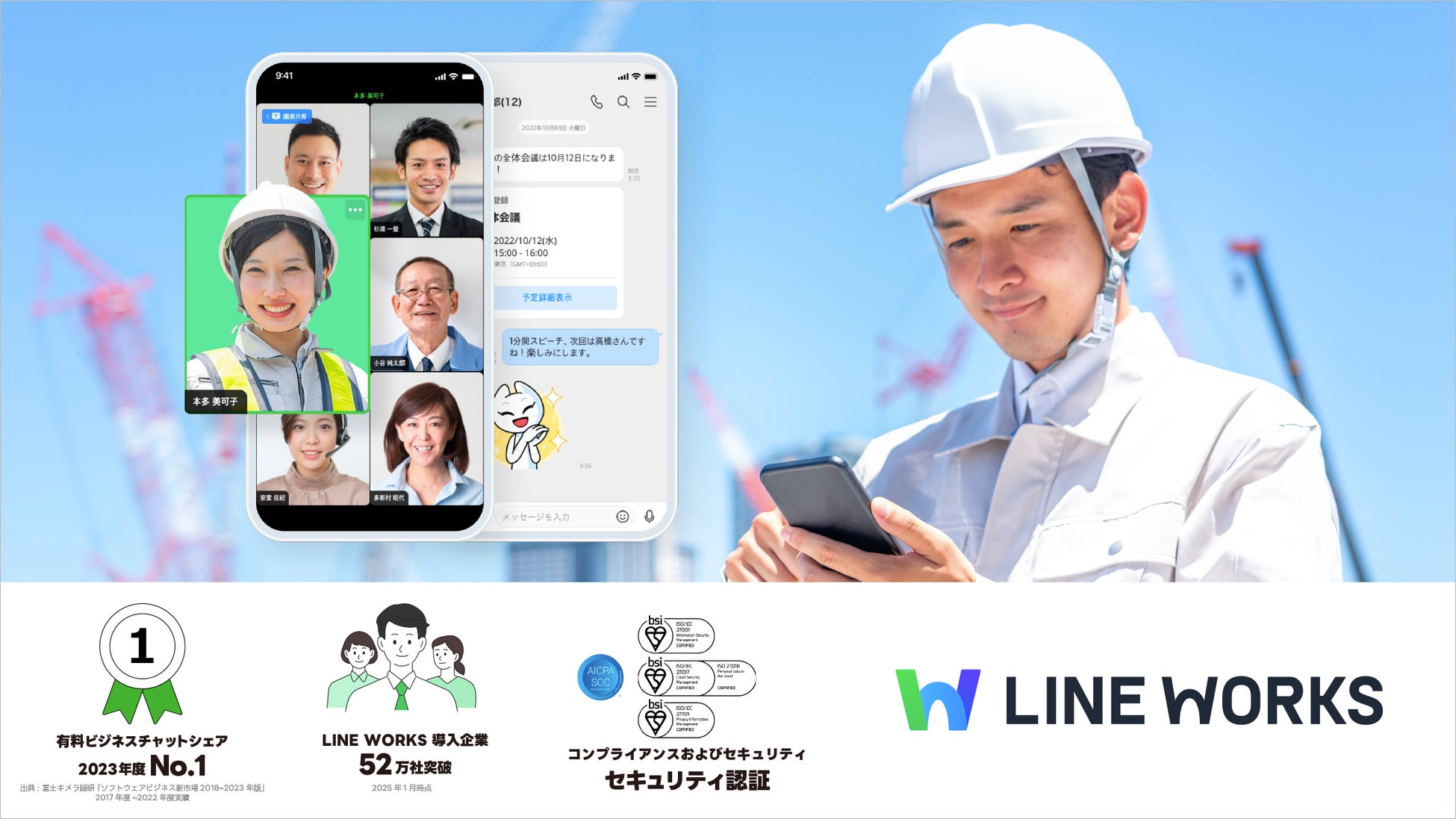 ビジネス現場のコミュニケーションツール「LINE WORKS」や各種AI製品を提供するLINE WORKS株式会社(本社:東京都渋谷区、代表取締役社長:島岡 岳史)は、「LINE WORKS Vision」と「Drive Plus」が国土交通省の新技術情報提供データベースシステム「NETIS(New Technology Information System)」の「LINE WORKS」に追加されたことをお知らせいたします。