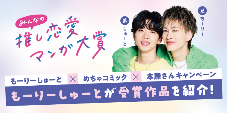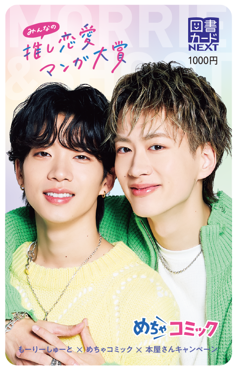 今回のキャンペーンでは、人気兄弟ユニット「もーりーしゅーと」にみんなの推し恋愛マンガ大賞受賞作を紹介していただきます。また、キャンペーン開催を記念して、当キャンペーン限定デザインの図書カード1,000円分が100名様に当たるTwitterキャンペーンを実施いたします。