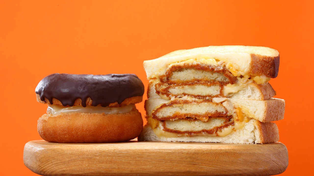 ローソンストア100が贈るギルティフード「THE カロリー」シリーズ、待望の第2弾が登場!1,000キロカロリー越えの「オールドファッションドーナツサンド」「コロッケたまごサンド」