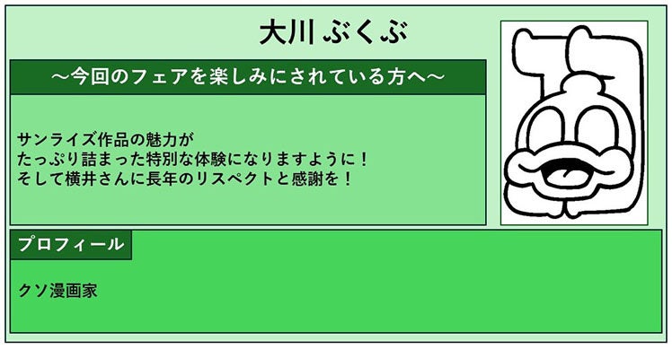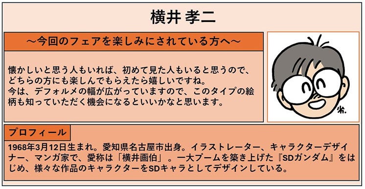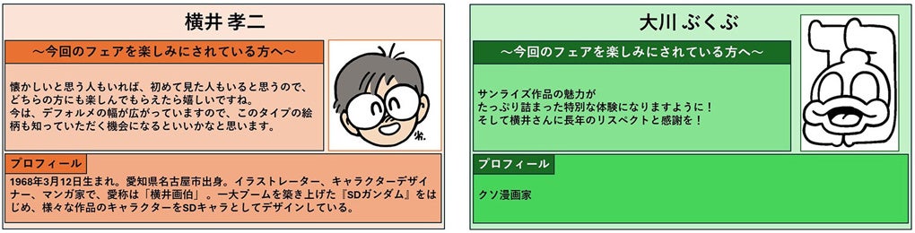 デフォルメロボットフェアでは、横井孝二が描き下ろしたキービジュアルや大川ぶくぶのイラストを使用したオリジナル新商品を販売します。