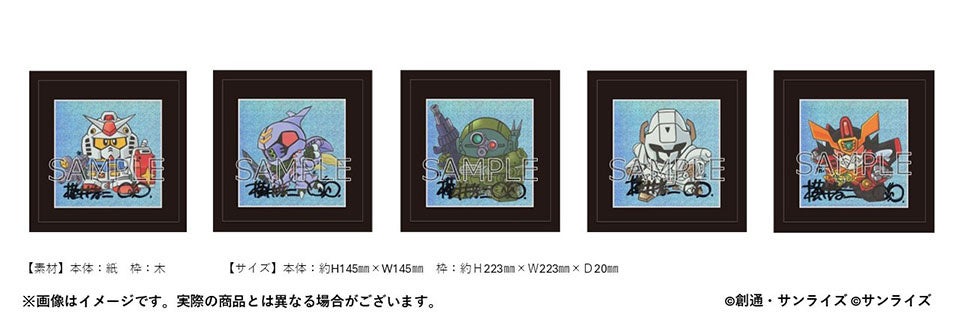 さらに、物販購入特典として3,000円(税込)ご購入ごとにランダムでプレゼントしている、クリエイター描き下ろし複製ミニ色紙には、『デフォルメロボット集合』、『蒼き流星SPTレイズナー』、『勇者エクスカイザー』、『勇者警察ジェイデッカー』、『BRIGADOON まりんとメラン』のミニ色紙が新登場。それぞれ、大川ぶくぶ、吉田徹、綱島志朗、石田敦子、寺田てらが描き下ろしたイラストをデザインした、サンライズワールドでしか手に入らないオリジナル特典です。
