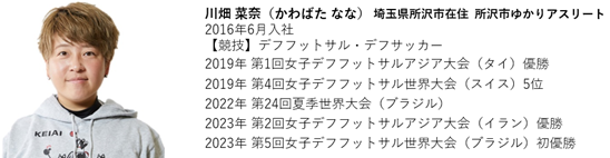 ※1…冬季デフリンピックの日本代表選手団 女子フットサル競技にケイアイチャレンジドアスリートチームから5名選出!https://ki-group.co.jp/wp/wp-content/uploads/2024/02/2024.2.15.1400_deaflympic.pdf