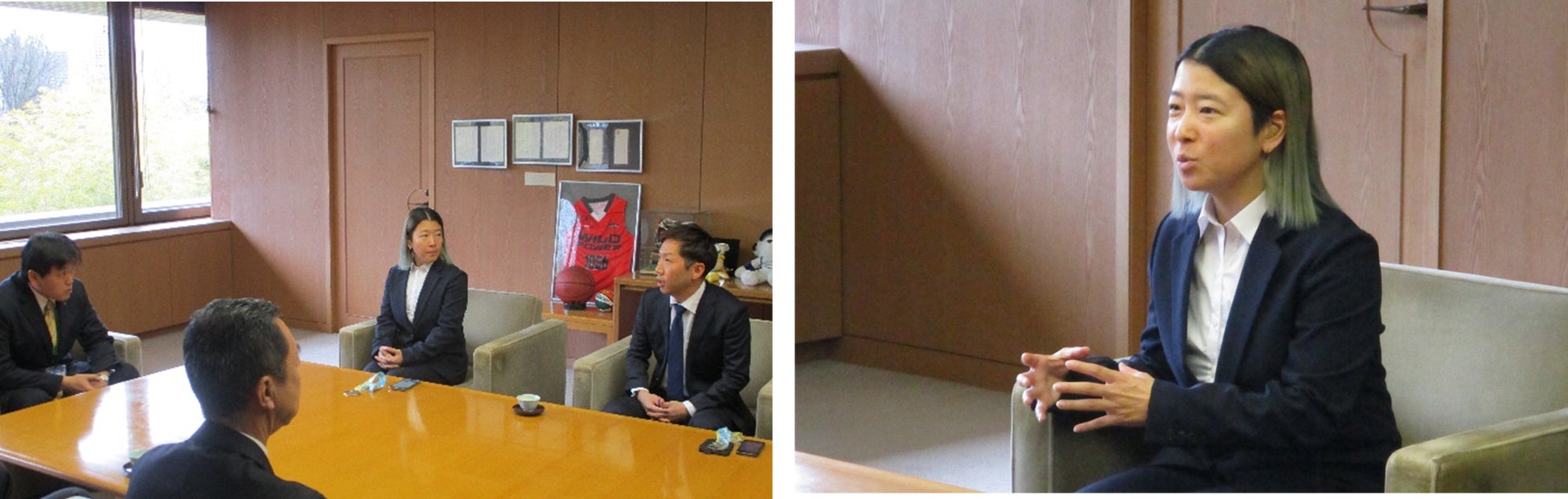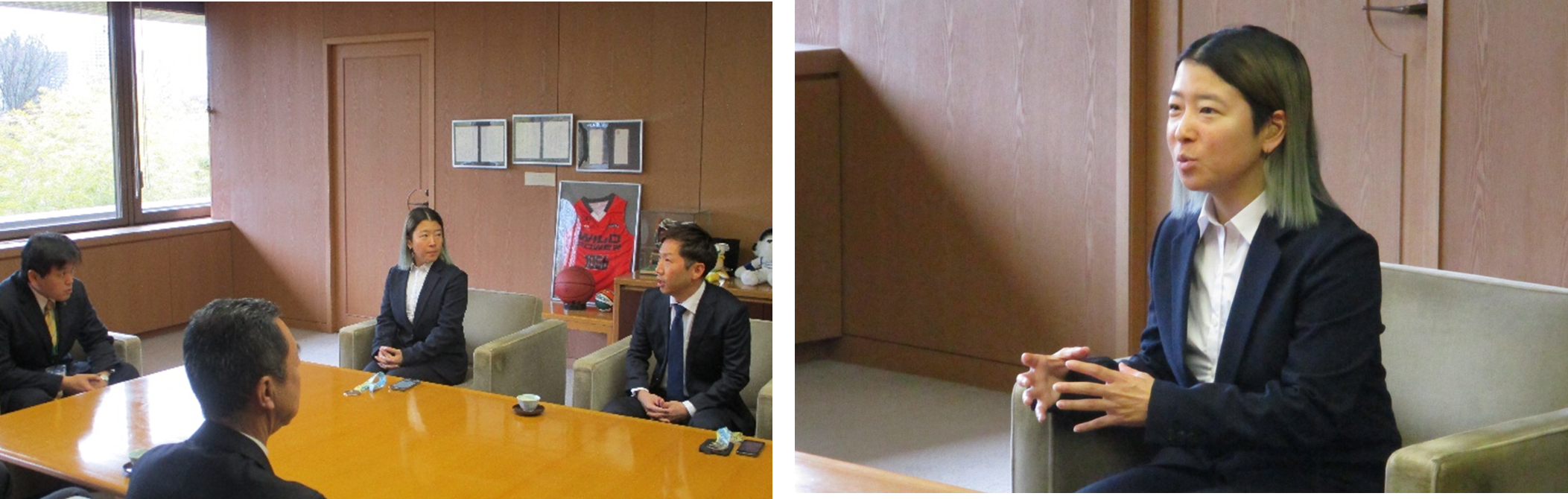 本日は市庁にお越しいただきありがとうございます。そして、第5回女子デフフットサル世界大会(ブラジル)にて優勝おめでとうございます!3月にデフリンピック参加のためトルコへ出発となるそうですが、身体に気を付けて頑張ってください。デフリンピックでのご活躍を期待しています。