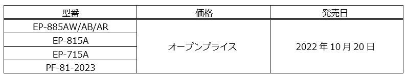 エプソンはカートリッジ方式の家庭用インクジェットプリンター新商品として3機種5モデルを2022年10月20日より発売します。また、2023年の干支となる卯年コンテンツを収録したハガキプリンター『PF-81-2023』を同時に発売します。