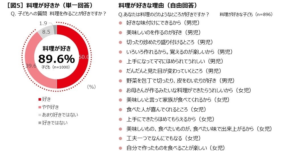 料理経験のある子どもの89.6%が料理好き。「楽しいから」「美味しいと言ってもらえてうれしいから」
