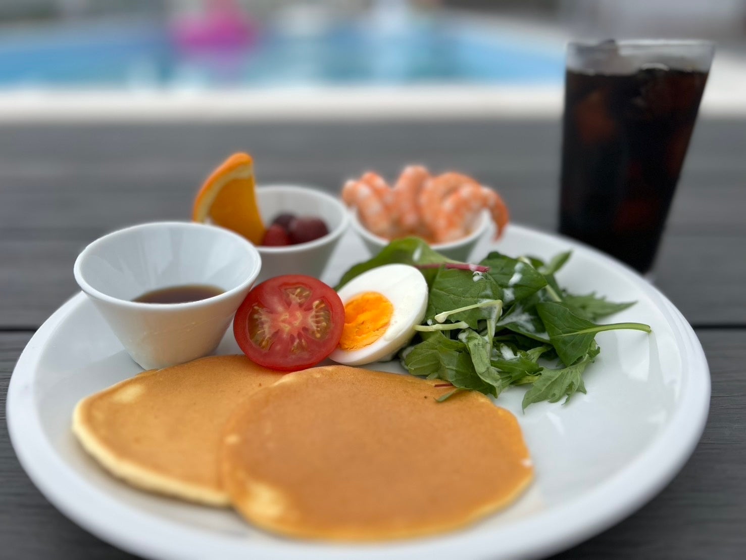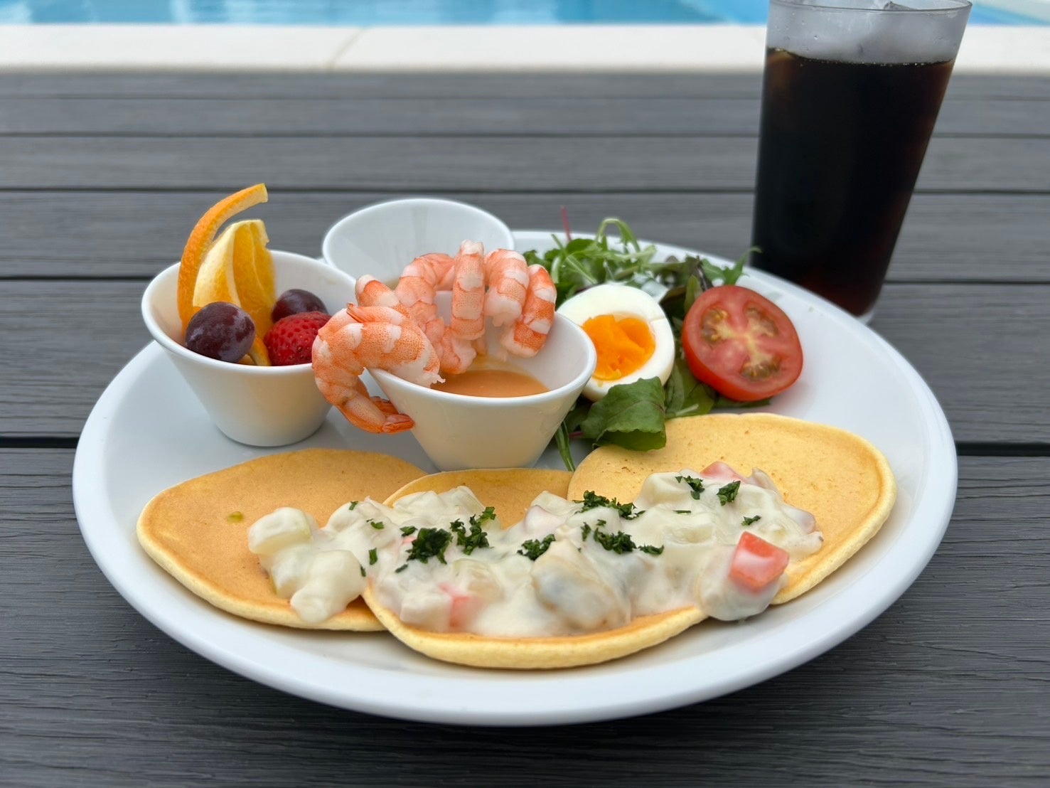 ・シュリンプカクテルとパンケーキプレート(ドリンクとクラムチャウダー付き)