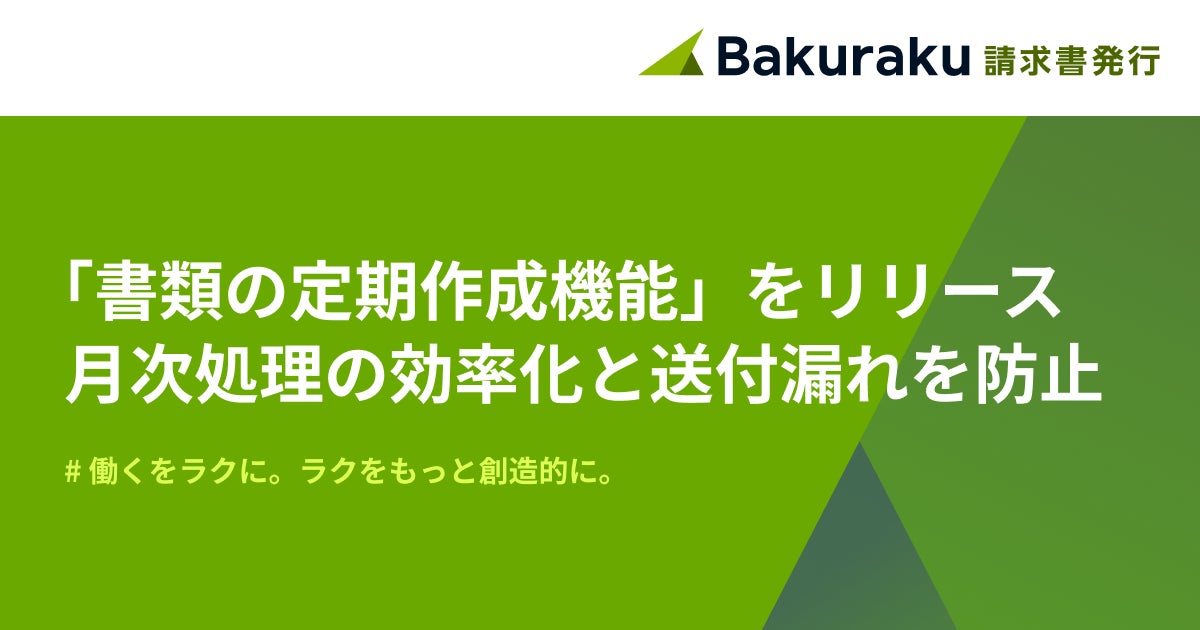 バクラク請求書発行、「書類の定期作成」機能をリリース 継続契約の繰り返し発行業務を自動化し、月次処理の効率化と送付漏れを防止