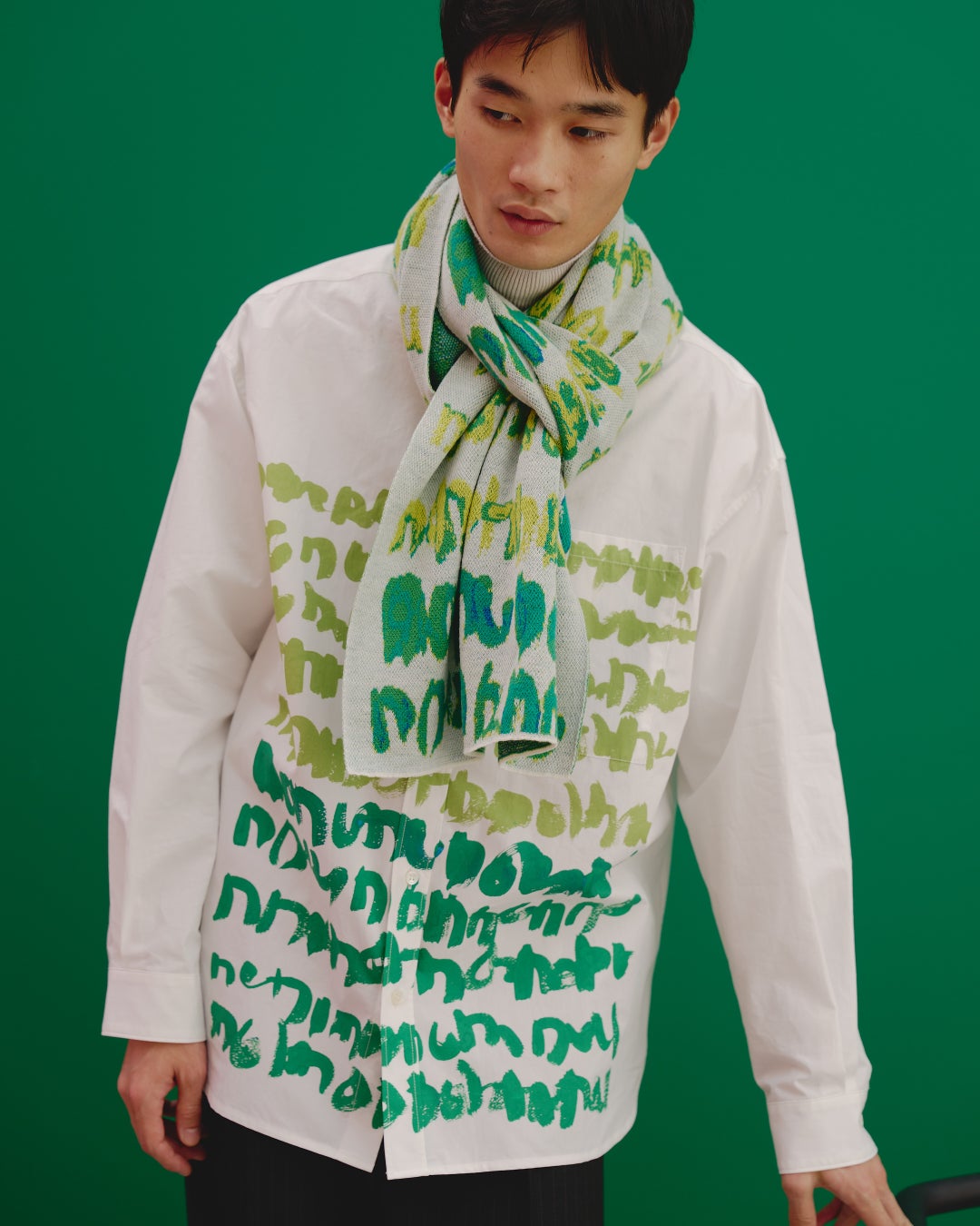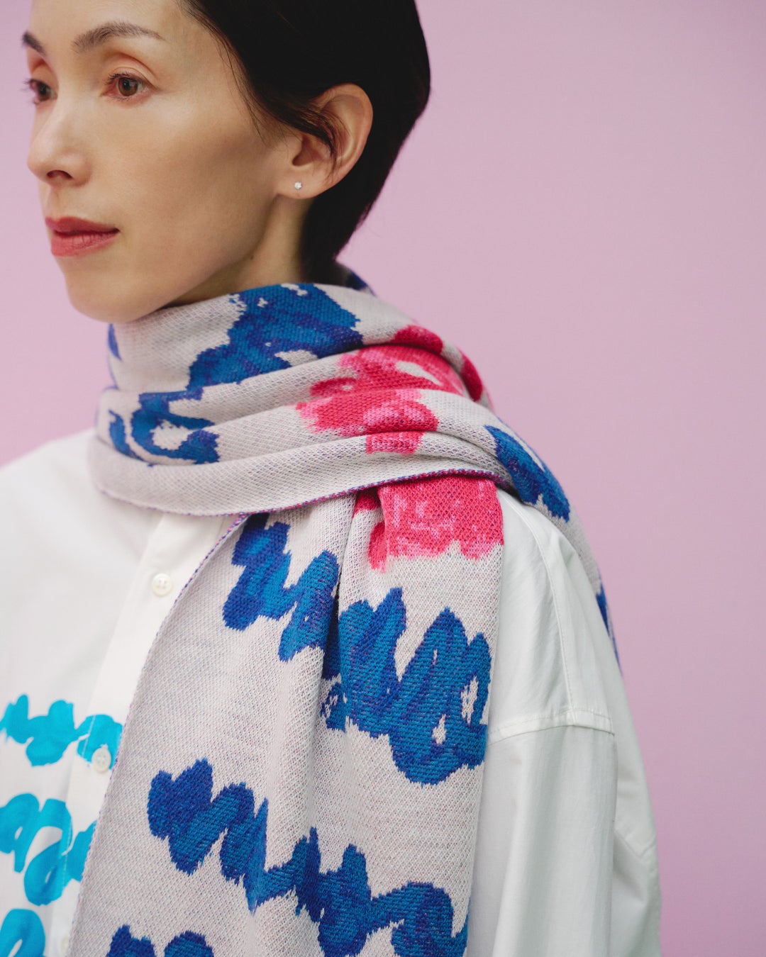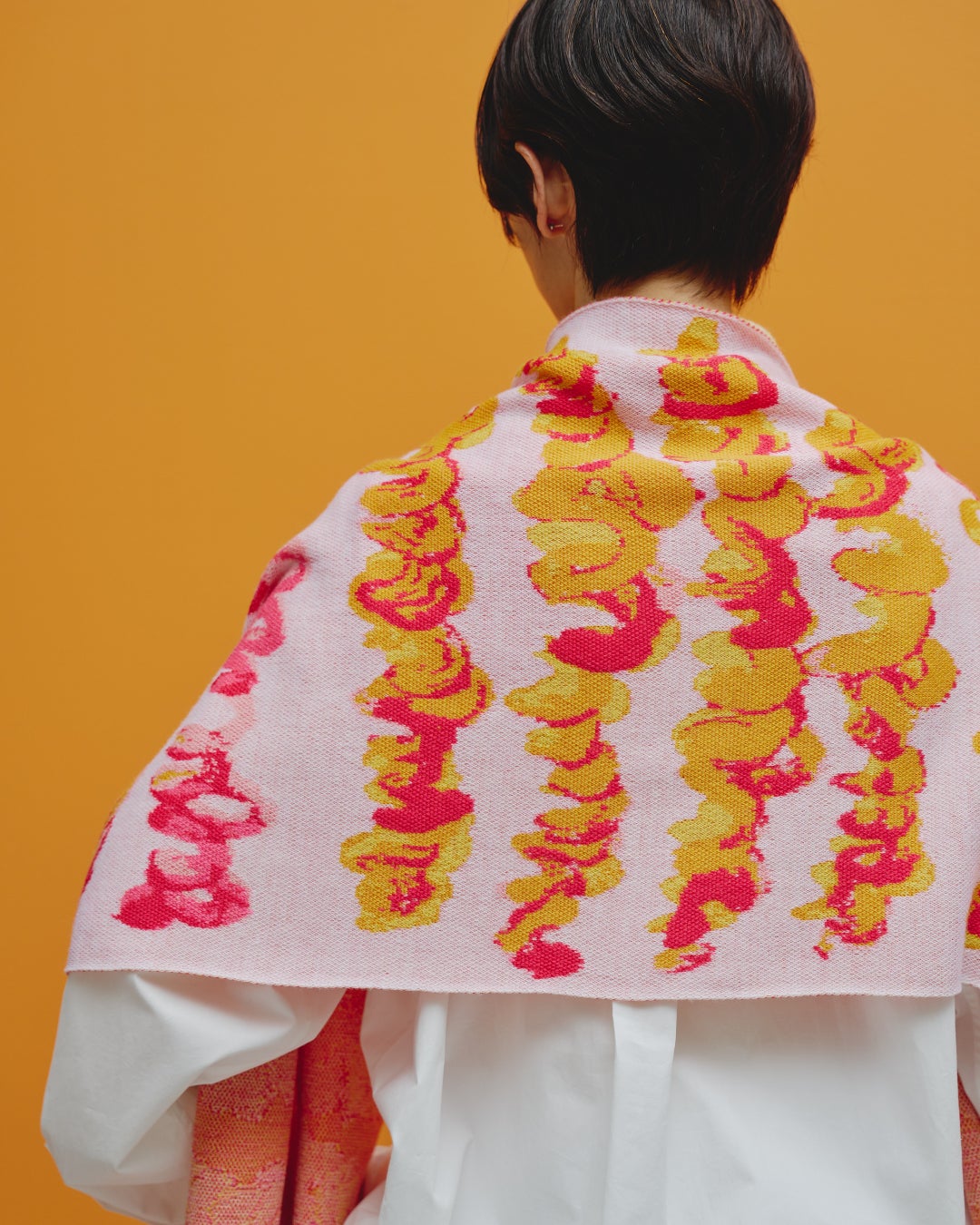 さらに今季新作として、アートをジャカード織で表現したウール素材のマフラーがラインナップに加わります。作品の色彩や筆致を織りの立体感で再構築し、冬の装いにアートを取り入れるHERALBONYならではの一枚です。