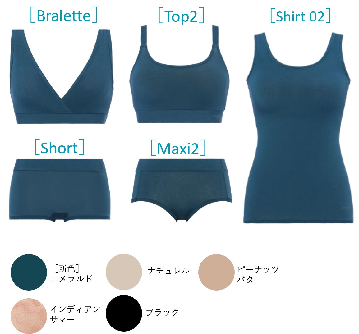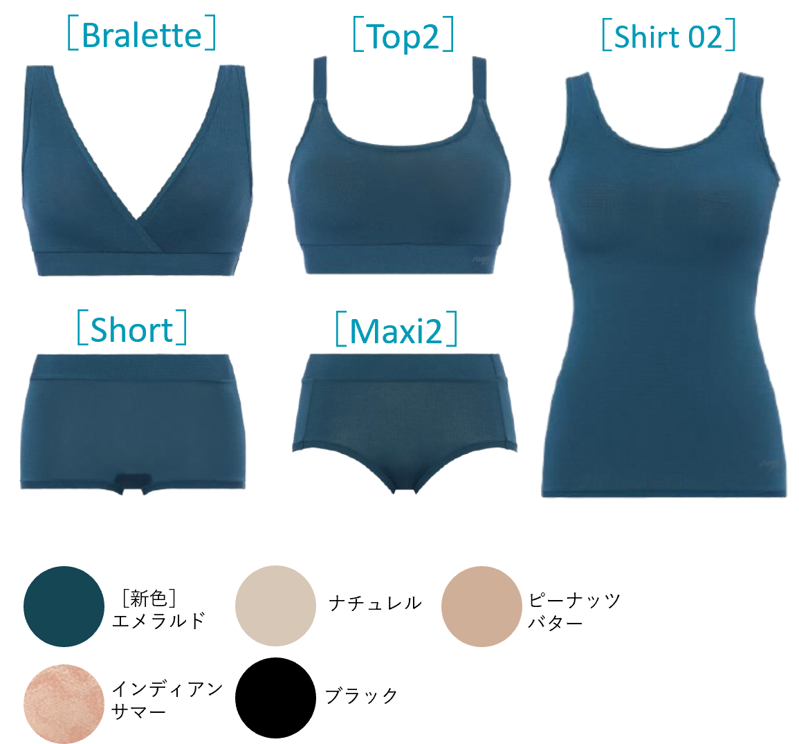 新色エメラルドが加わり5色展開。究極の伸縮性で大好評!