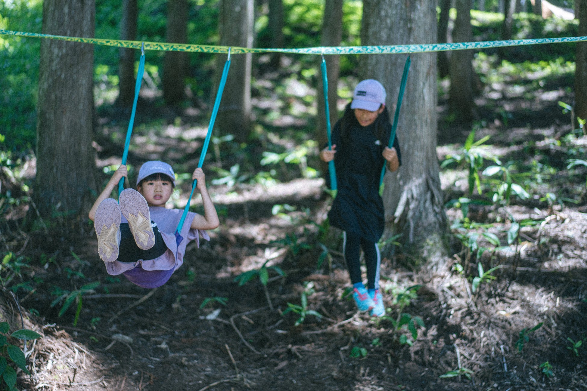大自然の中を探検しよう。遊んで学べる自然体験が盛りだくさん。キャンプ場内には、清流での水遊びが楽しめる小川や、ブランコ、ターザンロープ、芝滑りなど、お子様が安全に遊べる多彩なアスレチック施設を完備しています。