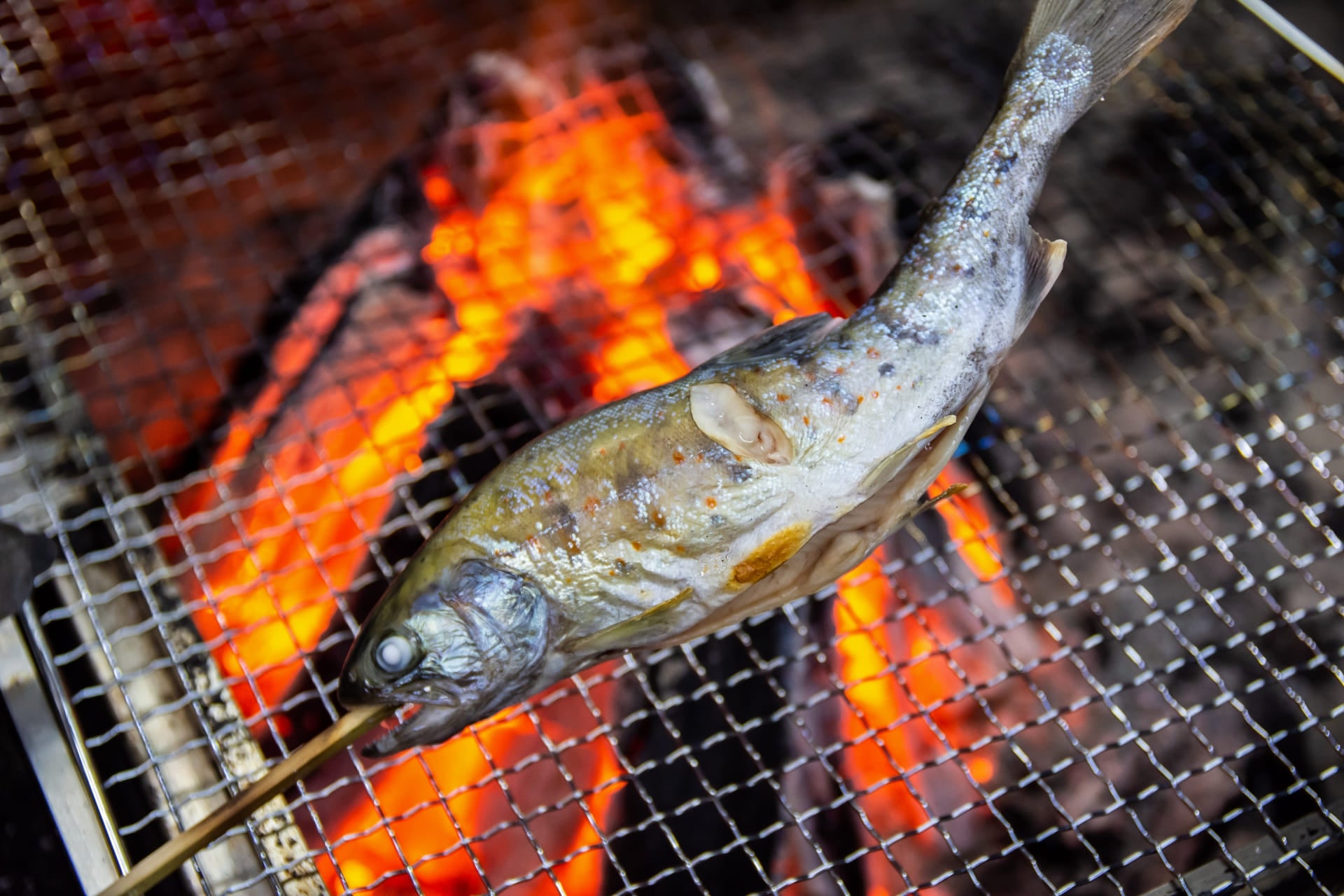 自分でつかんで、その場で焼いて食べられる!夏の川遊びの定番。7/26~8/30、毎週土曜日開催!