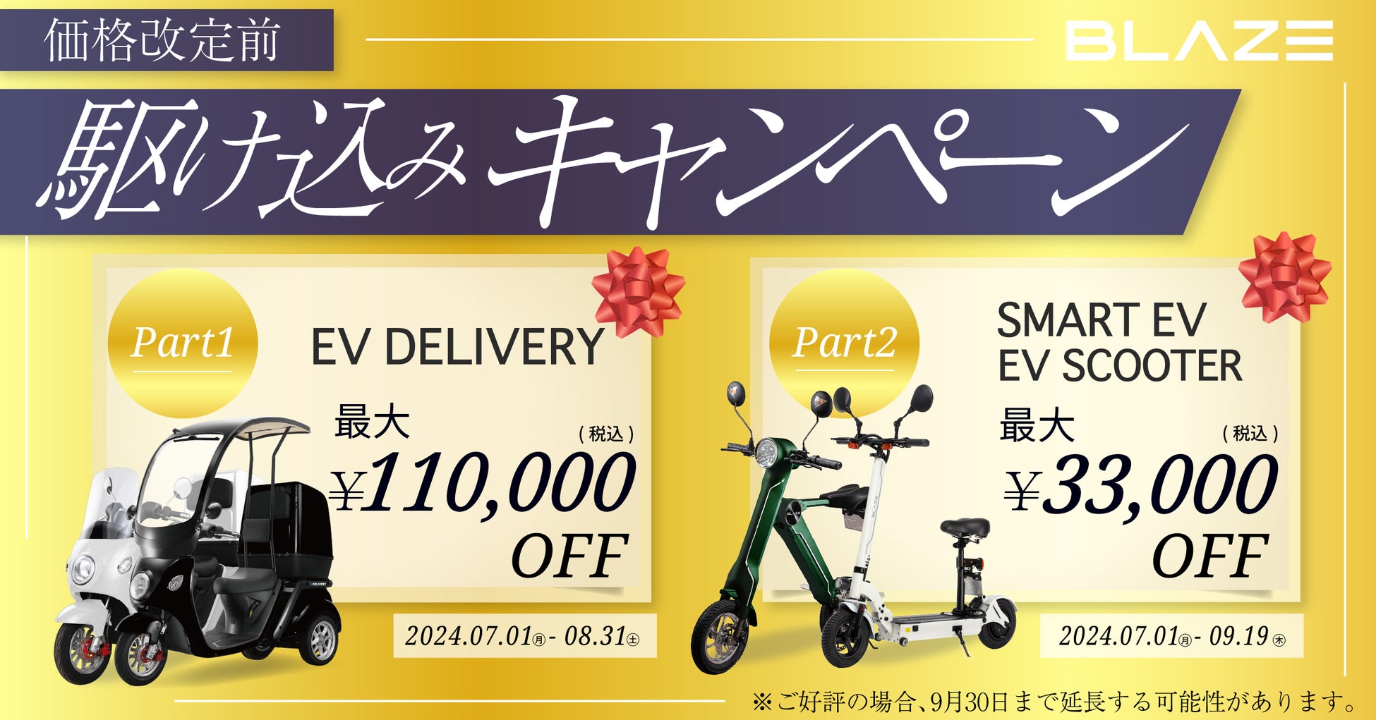 【最大11万円OFF!】(株)ブレイズ 電動バイク「駆け込みキャンペーン」実施のお知らせ