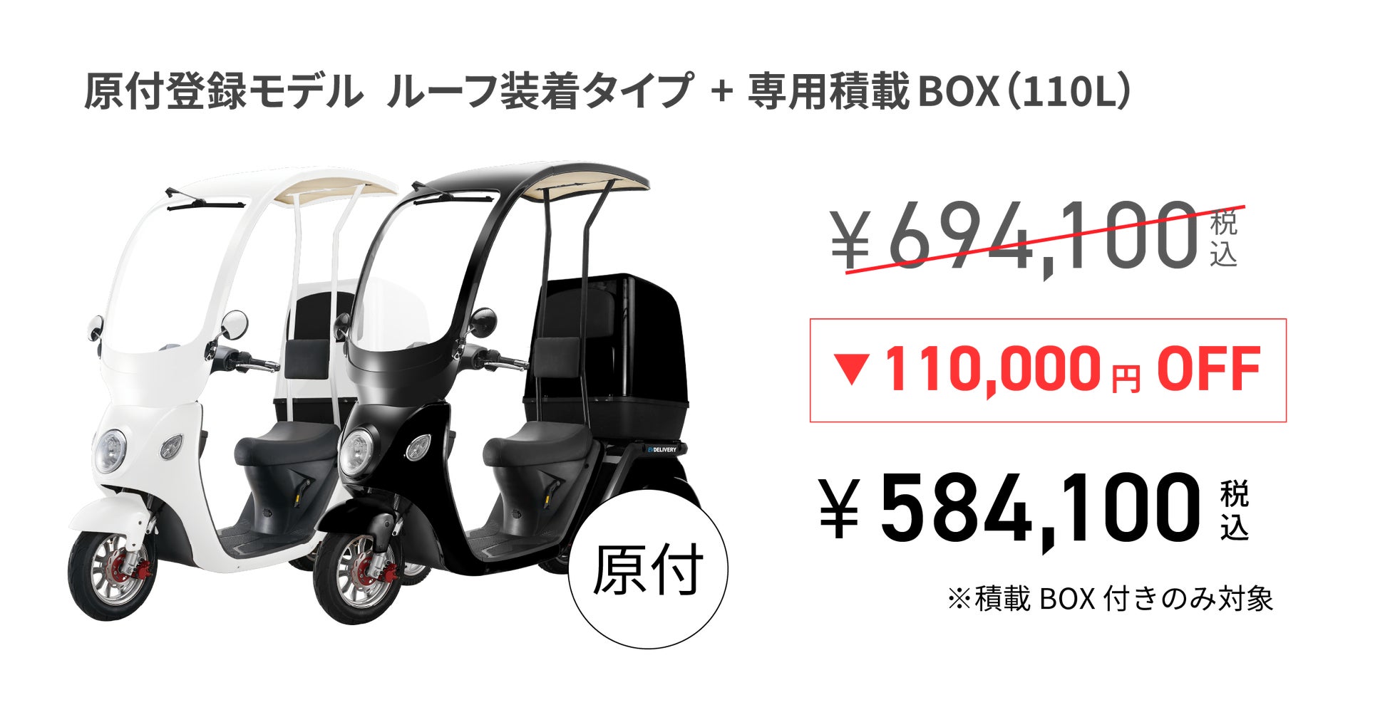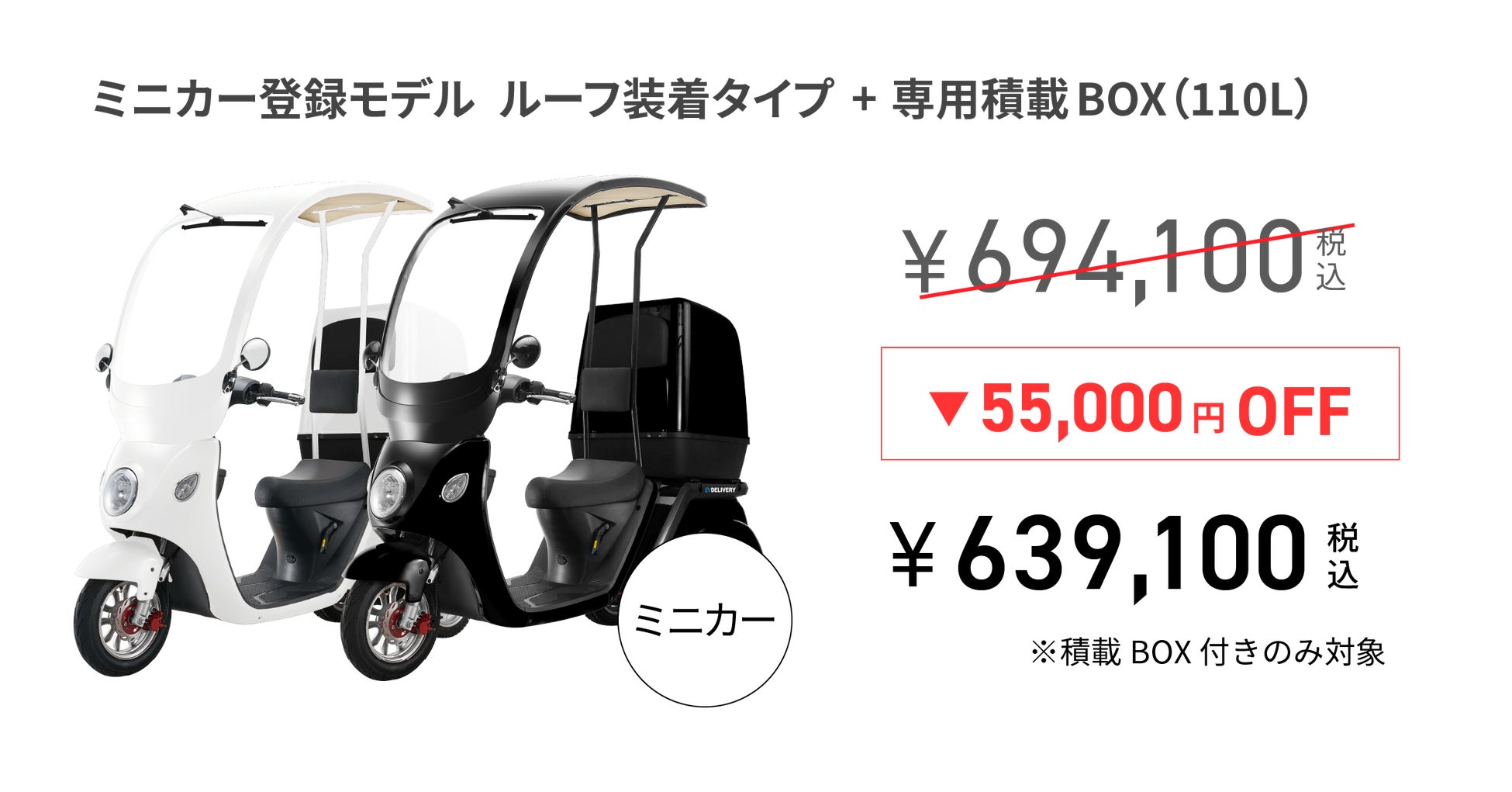 ルーフレスタイプであれば498,000円(税別)から購入でき、1回の充電費用はわずか156円(※環境により左右されます)。