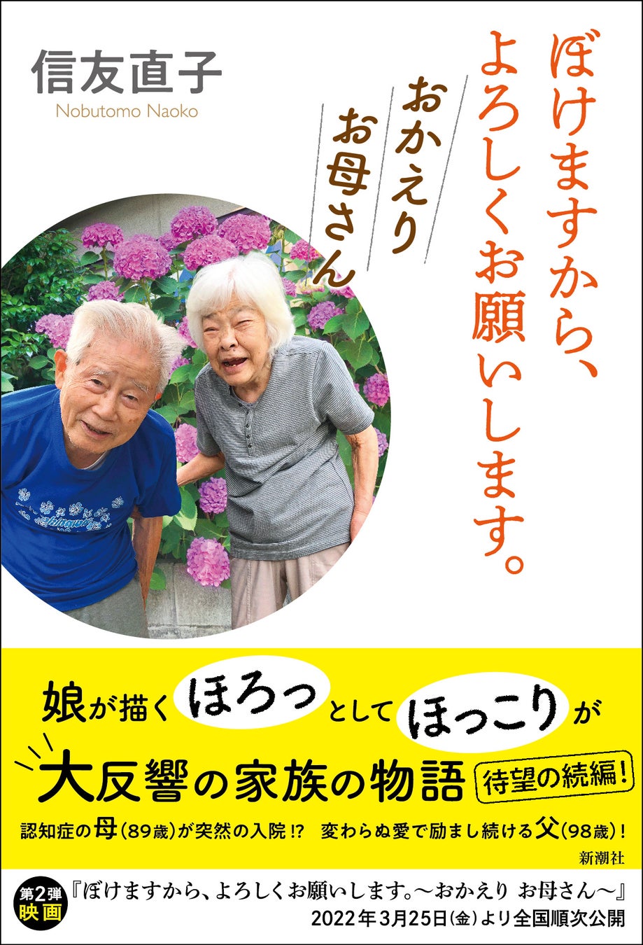 ドキュメンタリー映像作家の著者が記録し続けた両親の映像から生まれた映画は、「ほろっとしてほっこり」と大反響!コロナ禍にもかかわらず、ドキュメンタリーとしては異例の20万人を動員しました。映像に映らなかった一人娘の胸中をありのままに綴った前著から3年、脳梗塞で倒れた母と変わらぬ愛で支え続ける父のその後を書き下ろした『ぼけますから、よろしくお願いします。 おかえりお母さん』を3月16日、新潮社より刊行いたします。情報が解禁されるや、書店や図書館からの注文が相次ぎ、このたび異例の事前重版が決定いたしました。